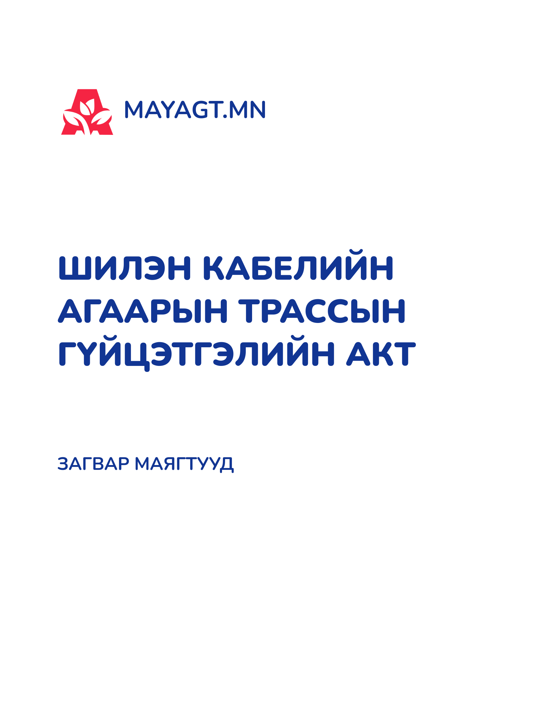ШИЛЭН КАБЕЛИЙН АГААРЫН ТРАССЫН ГҮЙЦЭТГЭЛИЙН АКТ