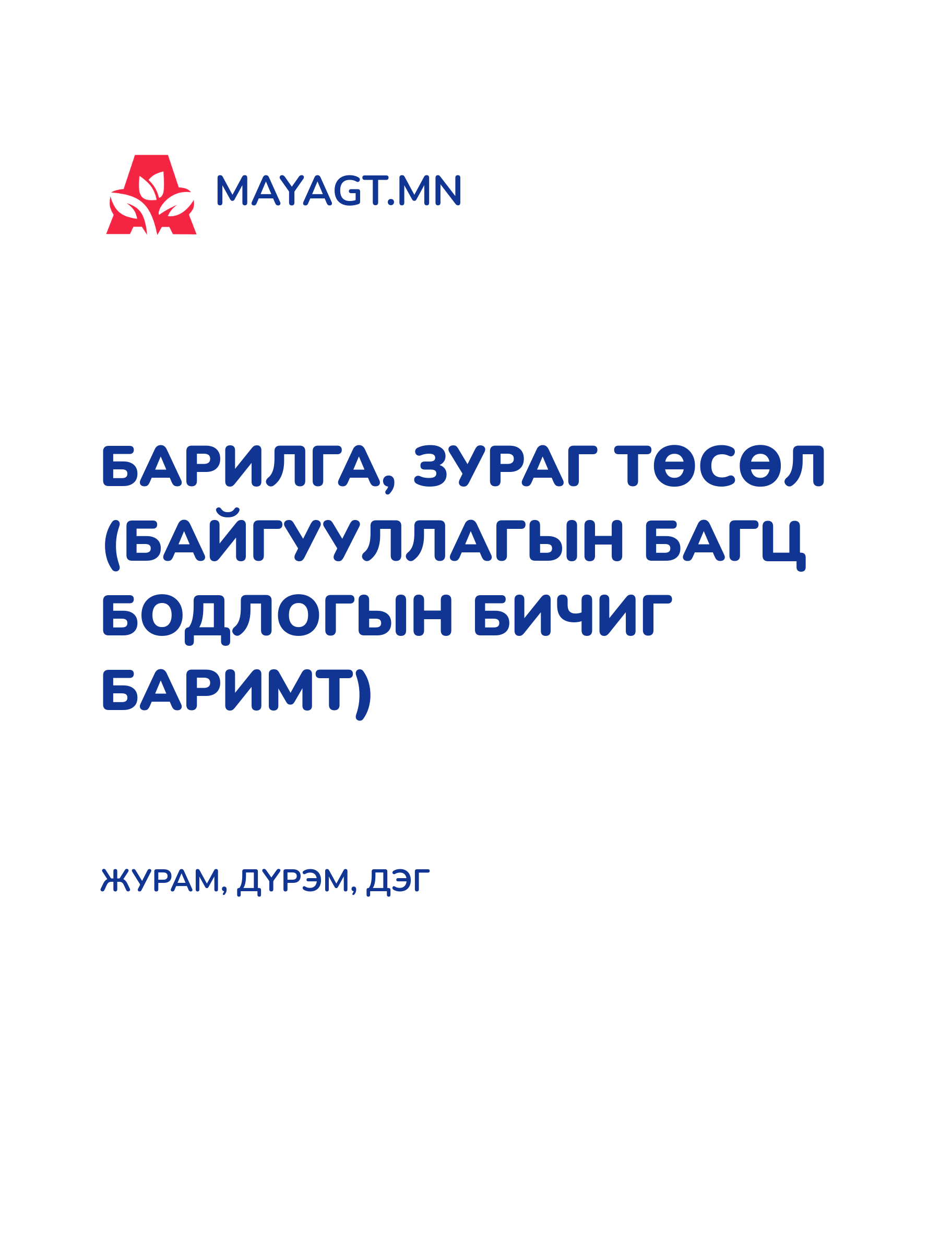 БАРИЛГА, ЗУРАГ ТӨСӨЛ (БАЙГУУЛЛАГЫН БАГЦ БОДЛОГЫН БИЧИГ БАРИМТ)