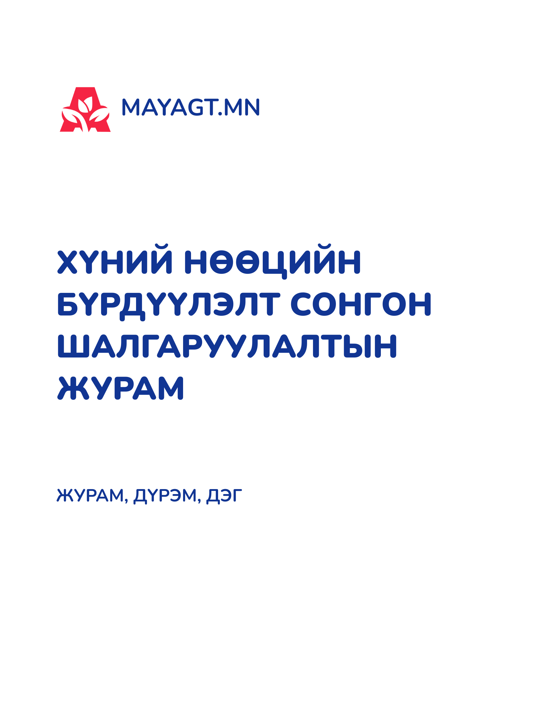 ХҮНИЙ НӨӨЦИЙН БҮРДҮҮЛЭЛТ СОНГОН ШАЛГАРУУЛАЛТЫН ЖУРАМ