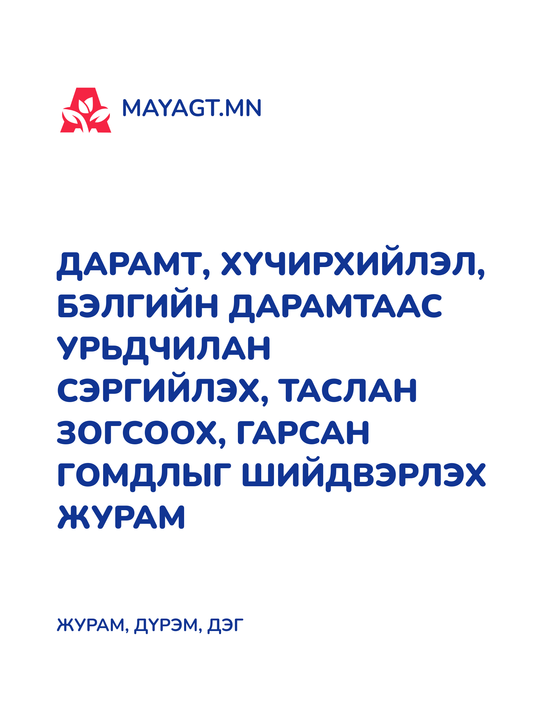 ДАРАМТ, ХҮЧИРХИЙЛЭЛ, БЭЛГИЙН ДАРАМТААС УРЬДЧИЛАН СЭРГИЙЛЭХ, ТАСЛАН ЗОГСООХ, ГАРСАН ГОМДЛЫГ ШИЙДВЭРЛЭХ ЖУРАМ