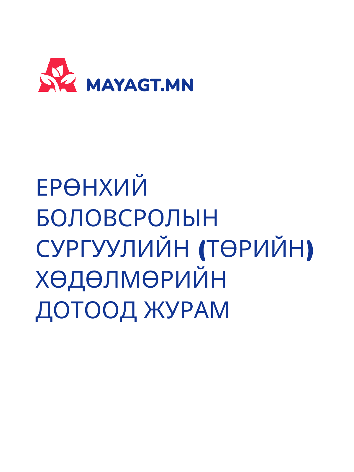 ЕРӨНХИЙ БОЛОВСРОЛЫН СУРГУУЛИЙН (төрийн) ХӨДӨЛМӨРИЙН ДОТООД ЖУРАМ