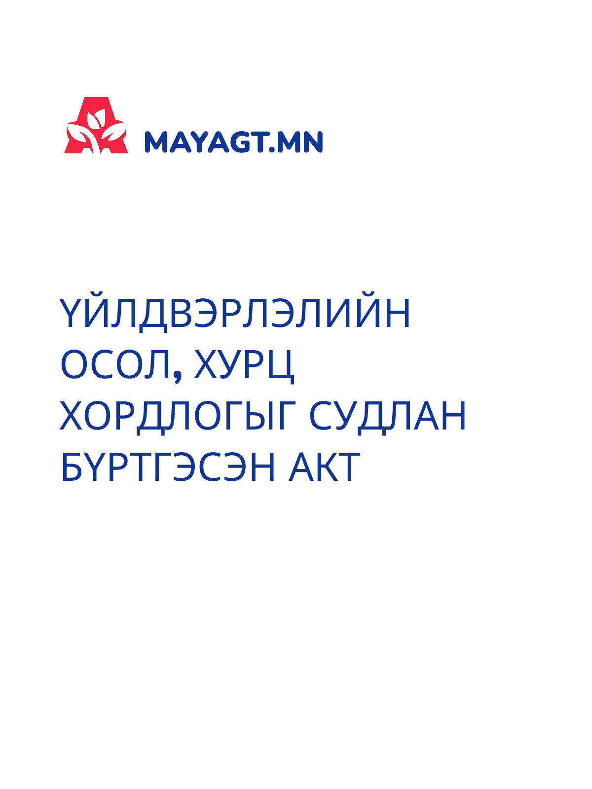 ҮЙЛДВЭРЛЭЛИЙН ОСОЛ, ХУРЦ ХОРДЛОГЫГ СУДЛАН БҮРТГЭСЭН АКТ