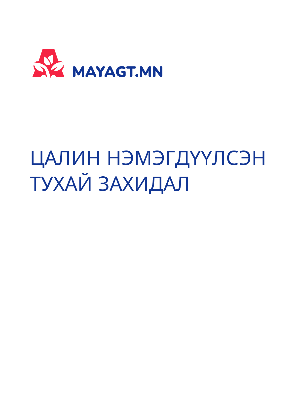 ЦАЛИН НЭМЭГДҮҮЛСЭН ТУХАЙ ЗАХИДАЛ