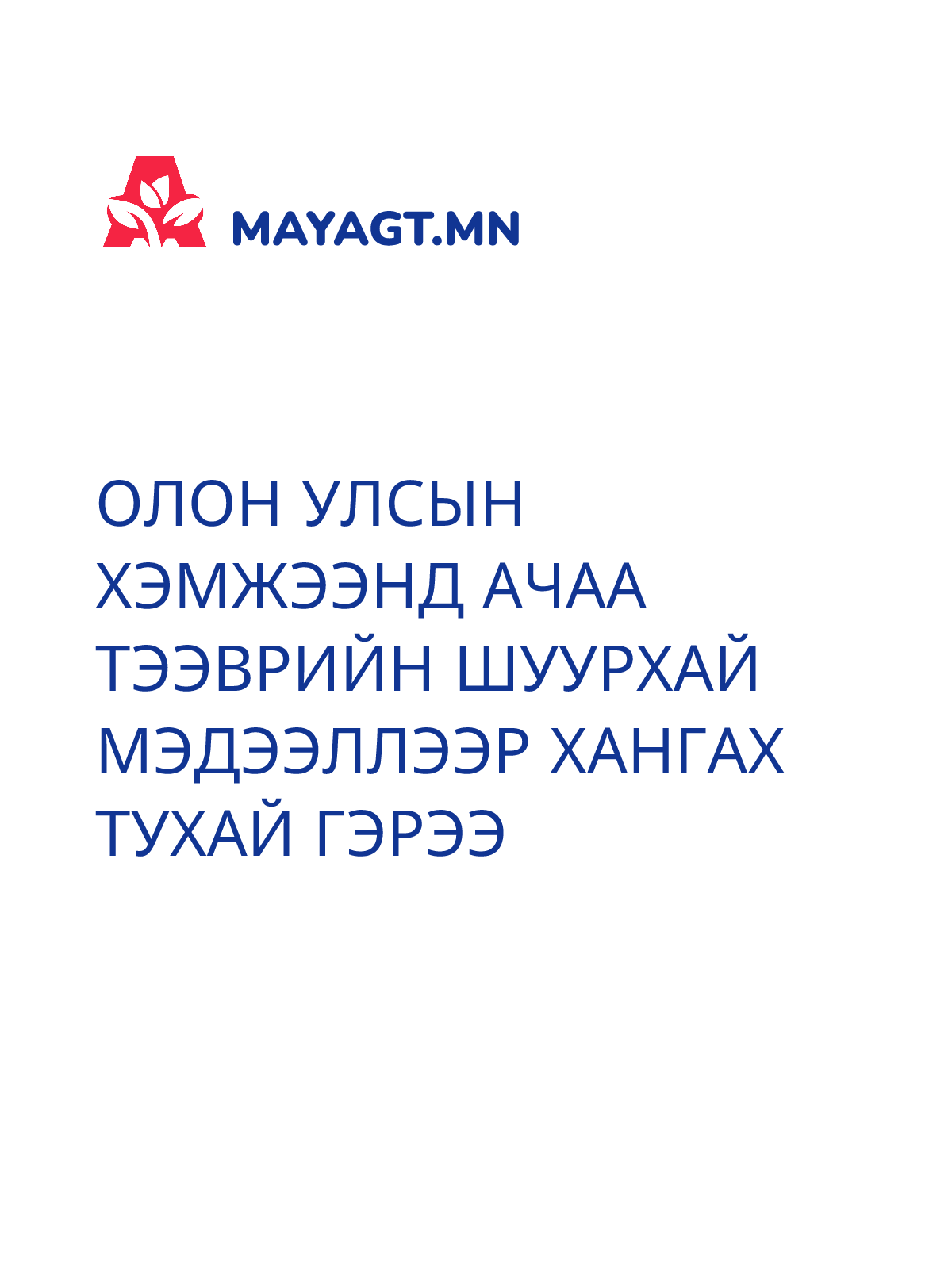 ОЛОН УЛСЫН ХЭМЖЭЭНД АЧАА ТЭЭВРИЙН ШУУРХАЙ МЭДЭЭЛЛЭЭР ХАНГАХ ТУХАЙ ГЭРЭЭ