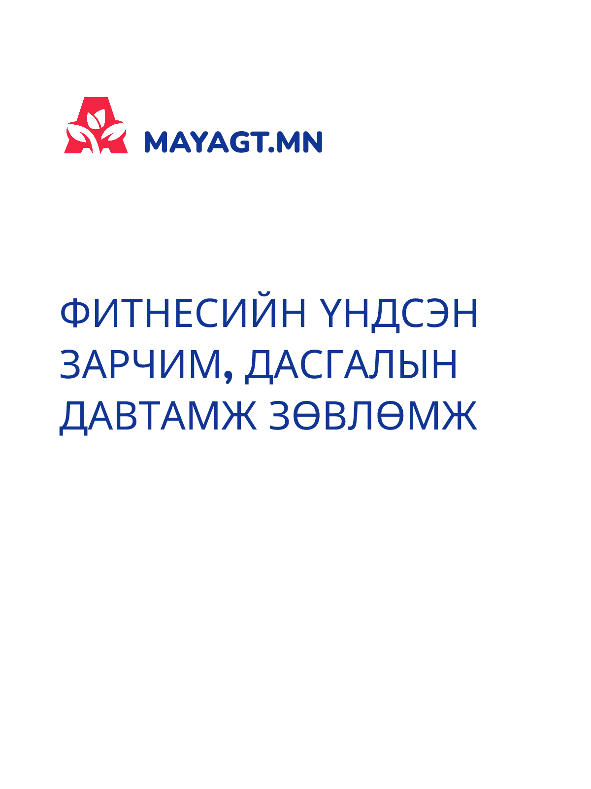 ФИТНЕСИЙН ҮНДСЭН ЗАРЧИМ, ДАСГАЛЫН ДАВТАМЖ ЗӨВЛӨМЖ