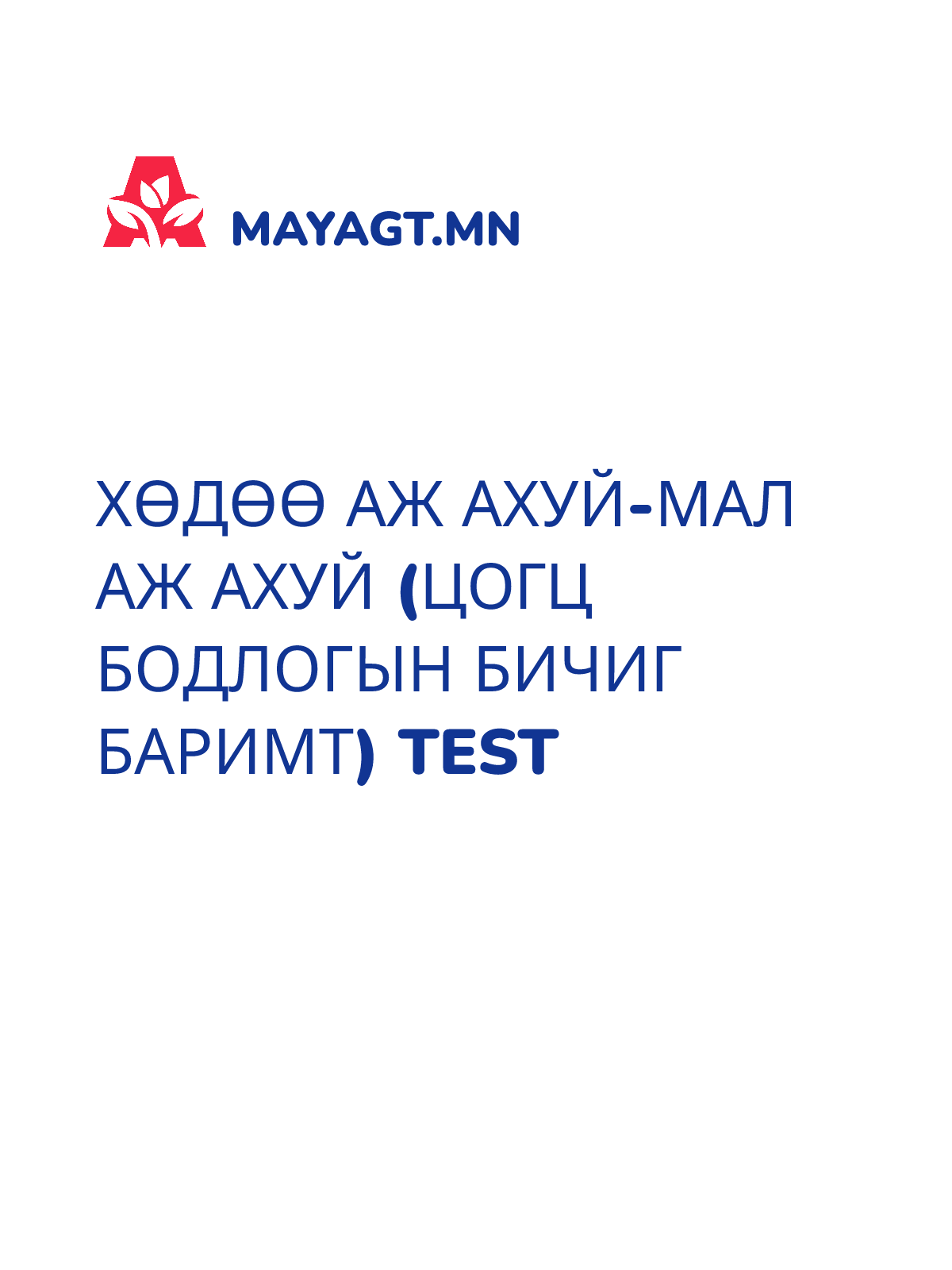 ХӨДӨӨ АЖ АХУЙ-МАЛ АЖ АХУЙ (ЦОГЦ БОДЛОГЫН БИЧИГ БАРИМТ) test