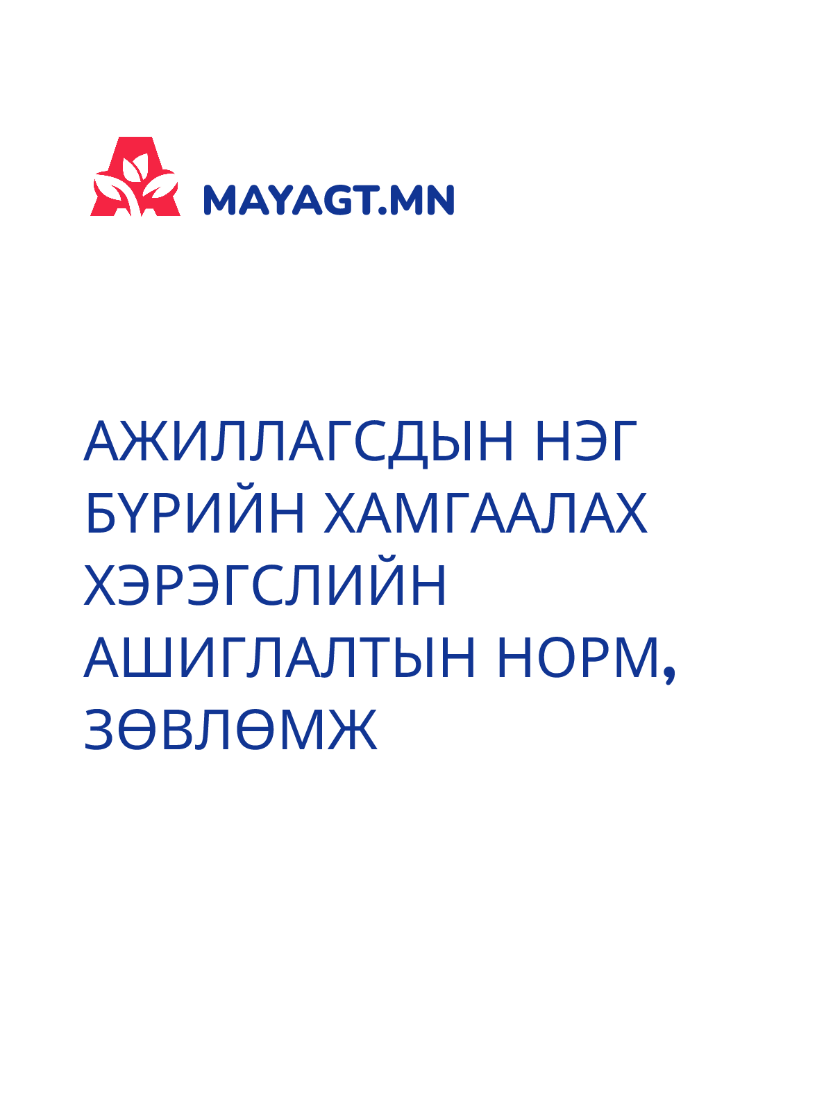 АЖИЛЛАГСДЫН НЭГ БҮРИЙН ХАМГААЛАХ ХЭРЭГСЛИЙН АШИГЛАЛТЫН НОРМ, ЗӨВЛӨМЖ