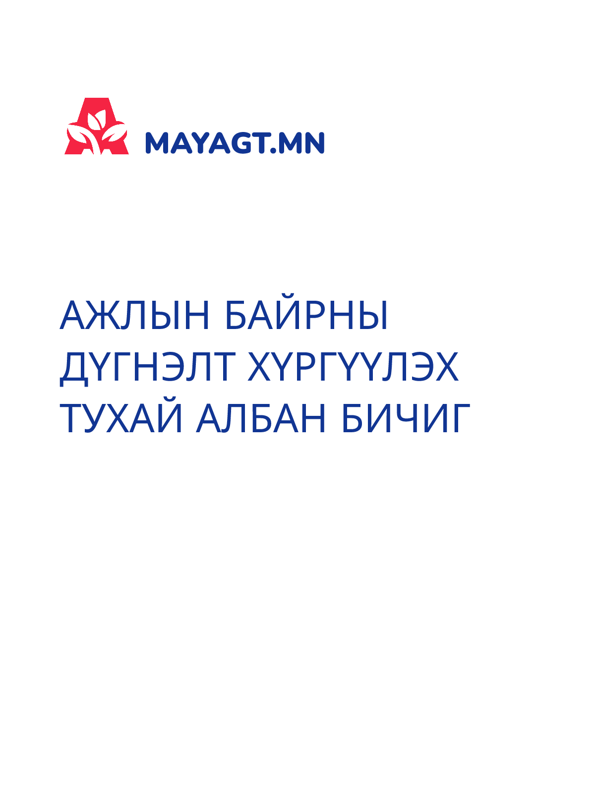 Энэхүү баримт бичиг нь байгууллагын хөдөлмөрийн нөхцөл, ХАБЭА-н хяналт шалгалтын үр дүн, "Ажлын байрны дүгнэлт болон зөвлөмж"-ийг холбогдох удирдлага эсвэл захиалагч байгууллагад албан ёсоор хүлээлгэн өгөхөд зориулагдсан бэлэн загвар юм. Монгол улсын албан хэрэг хөтлөлтийн стандартад нийцсэн.