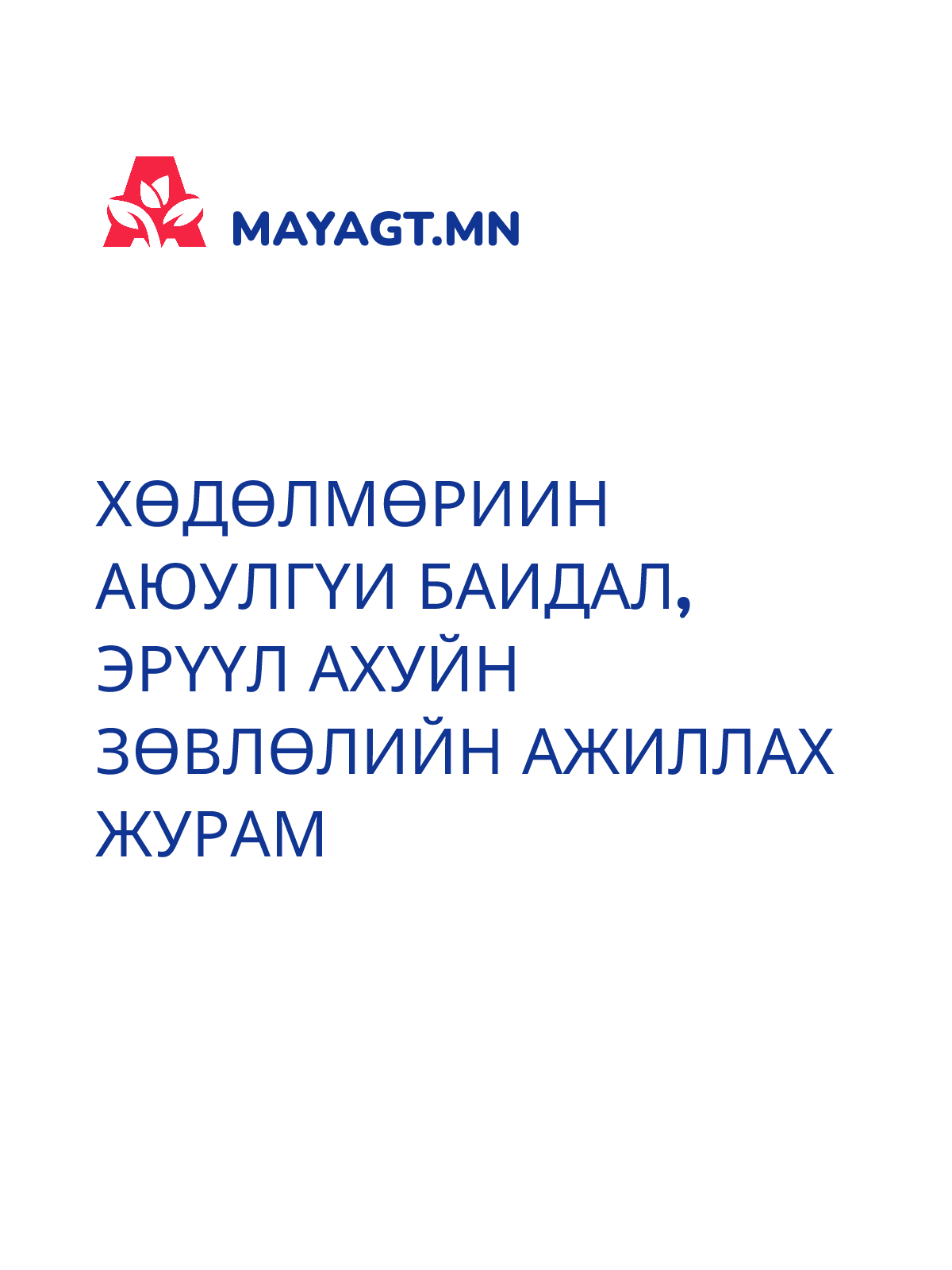 ХӨДӨЛМӨРИИН АЮУЛГҮИ БАИДАЛ, ЭРҮҮЛ АХУЙН ЗӨВЛӨЛИЙН АЖИЛЛАХ ЖУРАМ