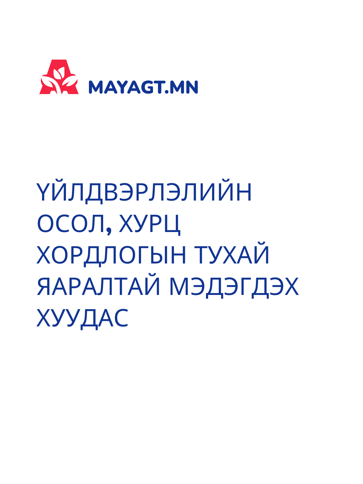 ҮЙЛДВЭРЛЭЛИЙН ОСОЛ, ХУРЦ ХОРДЛОГЫН ТУХАЙ ЯАРАЛТАЙ МЭДЭГДЭХ ХУУДАС