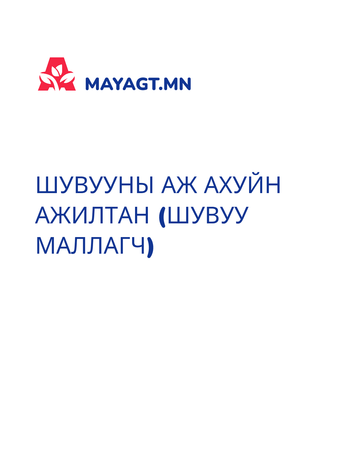 ШУВУУНЫ АЖ АХУЙН АЖИЛТАН (ШУВУУ МАЛЛАГЧ)