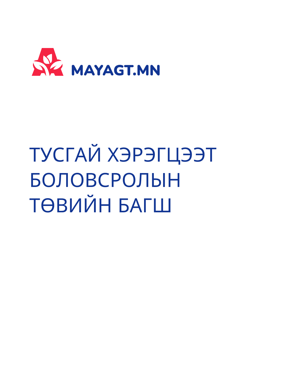 ТУСГАЙ ХЭРЭГЦЭЭТ БОЛОВСРОЛЫН ТӨВИЙН БАГШ