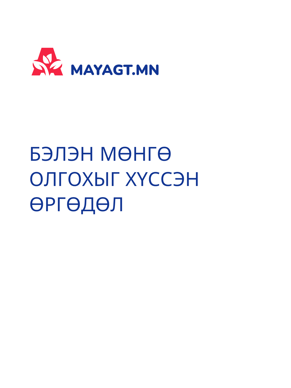 БЭЛЭН МӨНГӨ ОЛГОХЫГ ХҮССЭН ӨРГӨДӨЛ