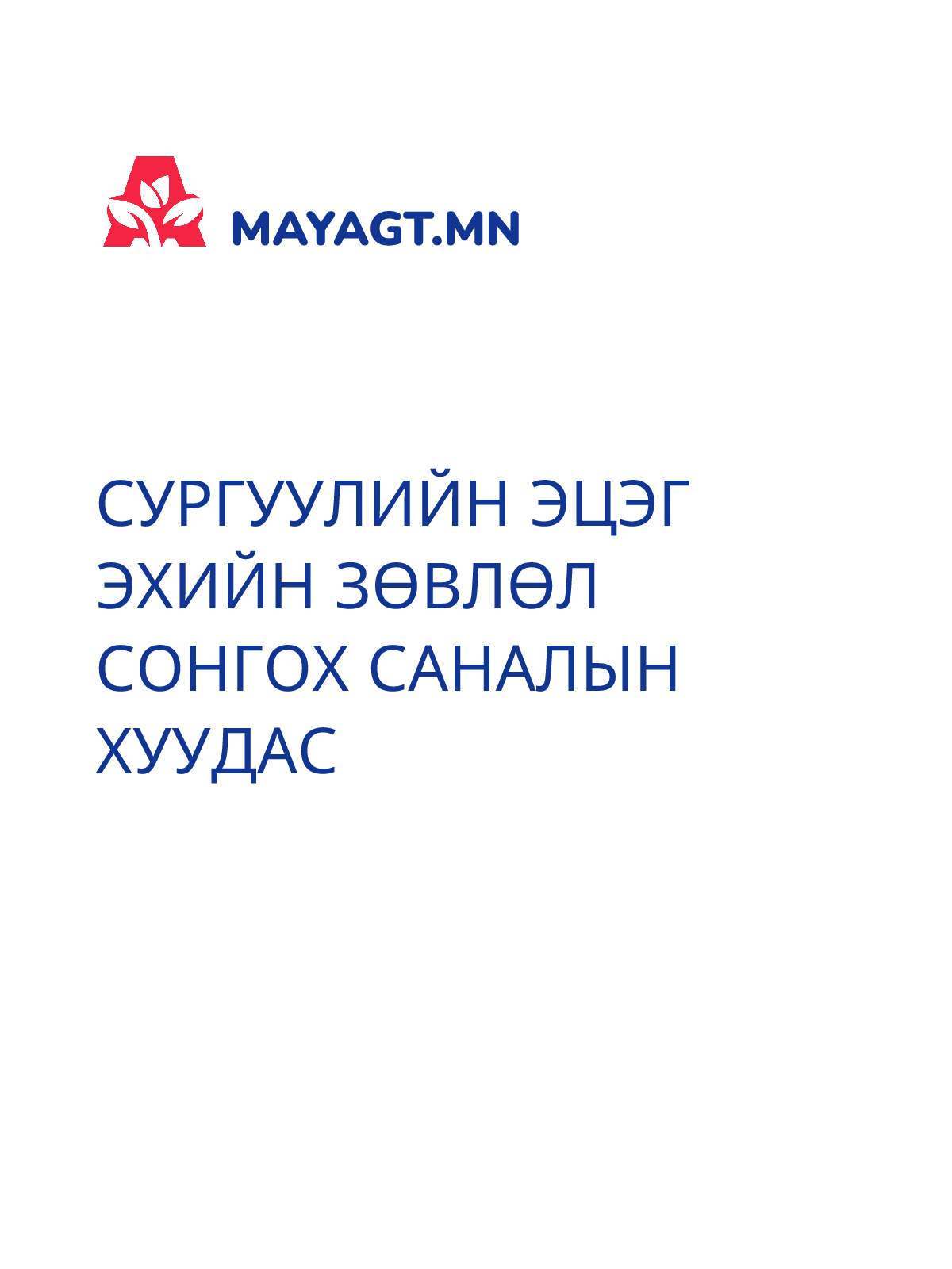 СУРГУУЛИЙН ЭЦЭГ ЭХИЙН ЗӨВЛӨЛ СОНГОХ САНАЛЫН ХУУДАС