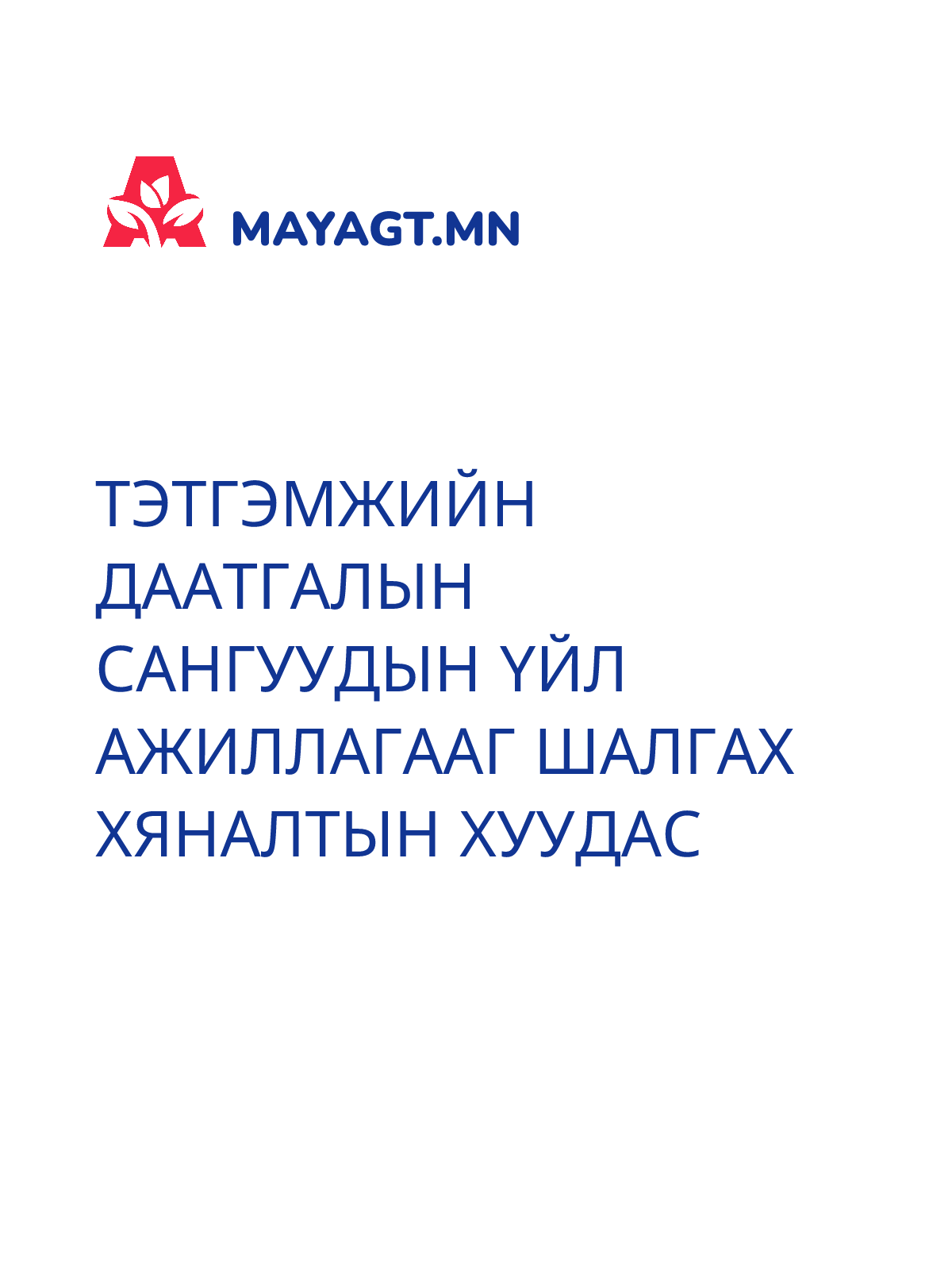 ТЭТГЭМЖИЙН ДААТГАЛЫН САНГУУДЫН ҮЙЛ АЖИЛЛАГААГ ШАЛГАХ ХЯНАЛТЫН ХУУДАС