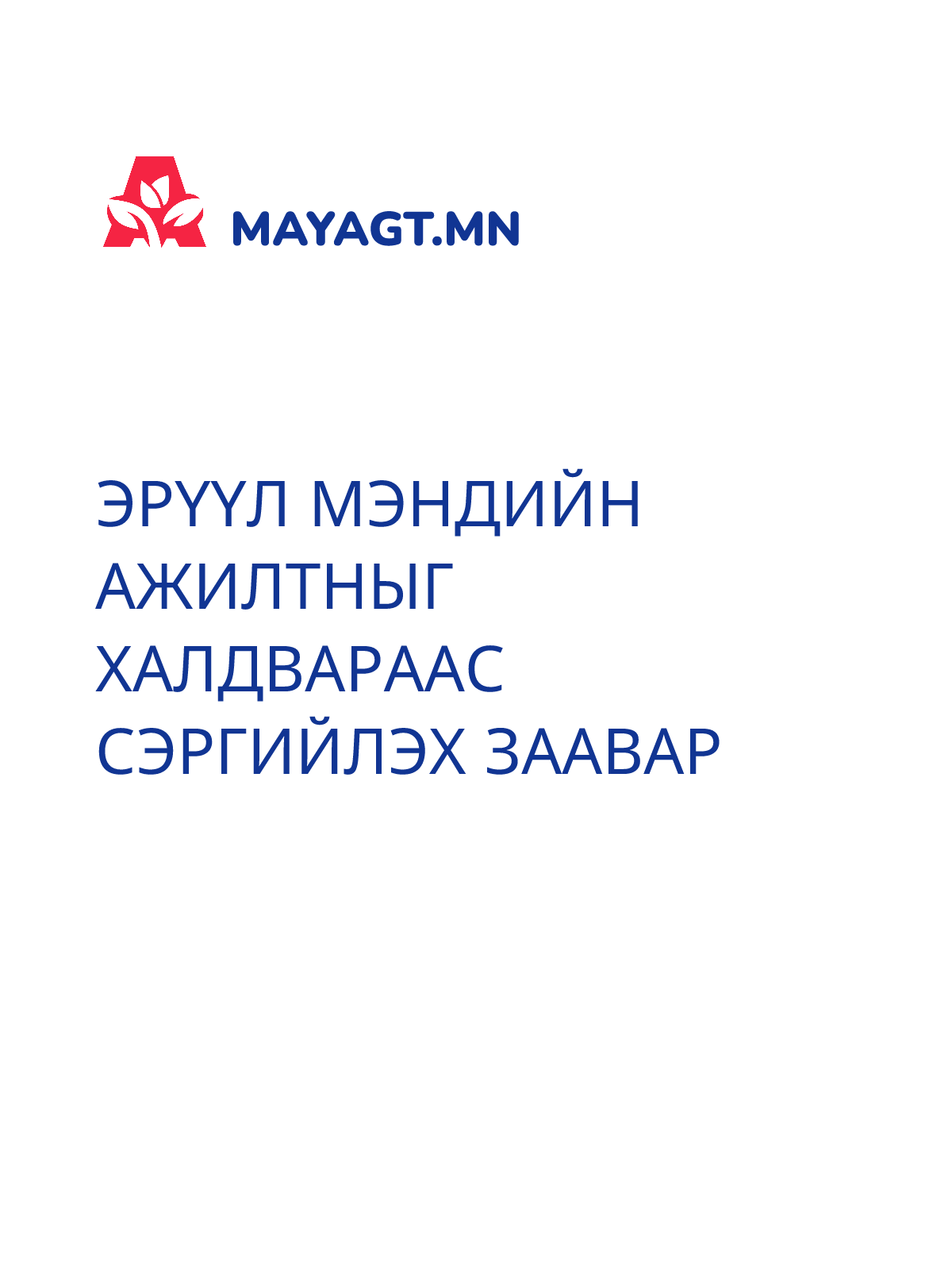 ЭРҮҮЛ МЭНДИЙН АЖИЛТНЫГ ХАЛДВАРААС СЭРГИЙЛЭХ ЗААВАР