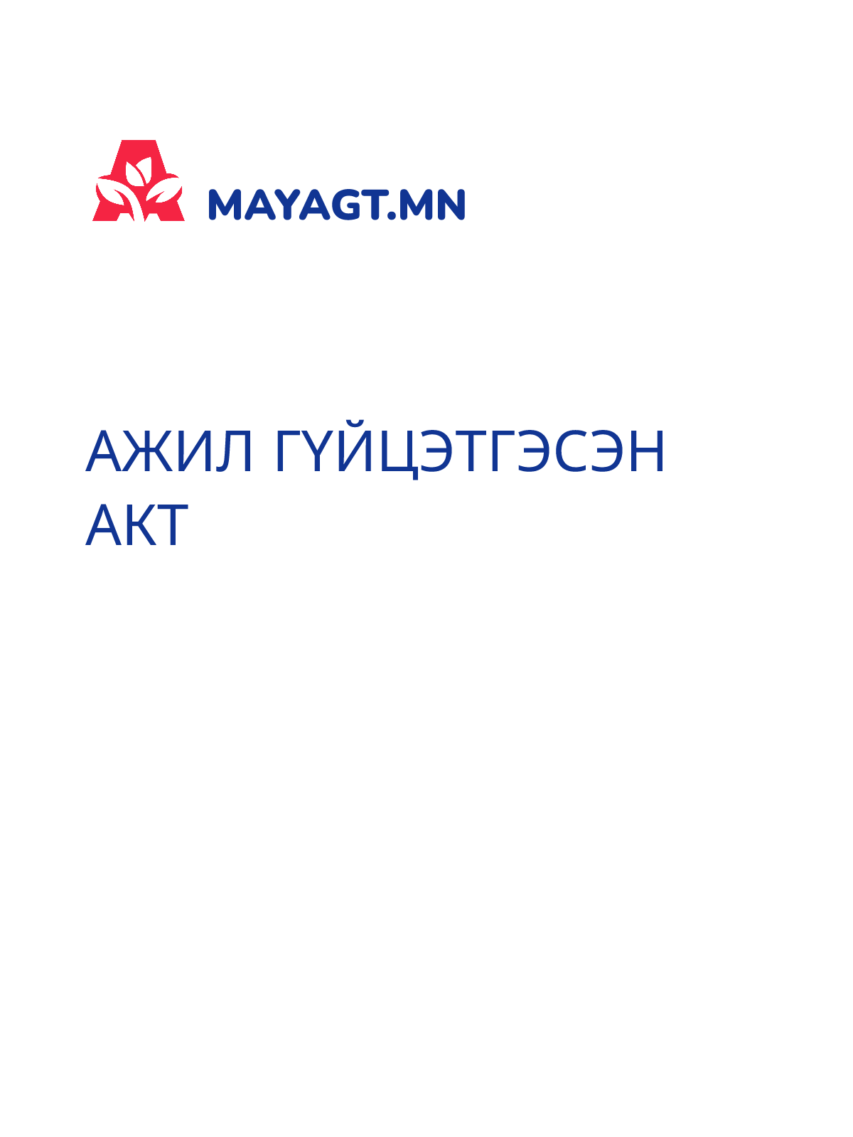 Ажил гүйцэтгэсэн акт нь захиалагч болон гүйцэтгэгчийн хооронд хийгдсэн ажлын биелэлтийг албан ёсоор баталгаажуулах баримт юм. Акт нь талуудын мэдээлэл, хийсэн ажлын нэр, дэлгэрэнгүй тайлбар, гүйцэтгэлийн хувь, хугацаа болон шаардлагатай засвар, сайжруулалтын мэдээллийг агуулна. Мөн ажил гүйцэтгэлийн нийт үнэ, төлбөрийн нөхцөл, НӨАТ орсон эсэхийг зааж өгдөг. Захиалагч тал нь ажлыг чанарын шаардлага хангасан гэж хүлээн авч, гүйцэтгэгч тал ажлыг гэрээний дагуу хүлээлгэн өгнө. Эцэст нь талууд гарын үсэг зурж, актыг баталгаажуулна.
