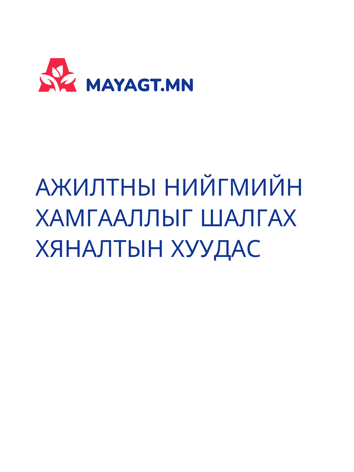 АЖИЛТНЫ НИЙГМИЙН ХАМГААЛЛЫГ ШАЛГАХ ХЯНАЛТЫН ХУУДАС