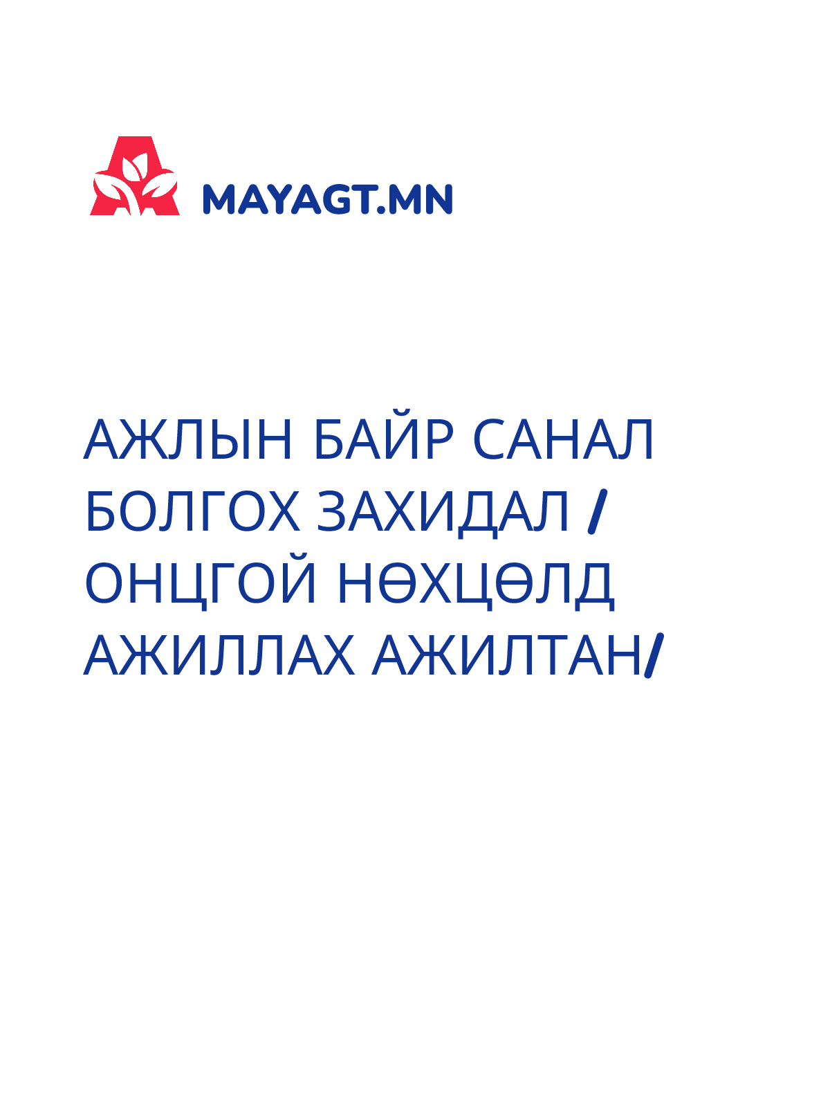АЖЛЫН БАЙР САНАЛ БОЛГОХ ЗАХИДАЛ /ОНЦГОЙ НӨХЦӨЛД АЖИЛЛАХ АЖИЛТАН/