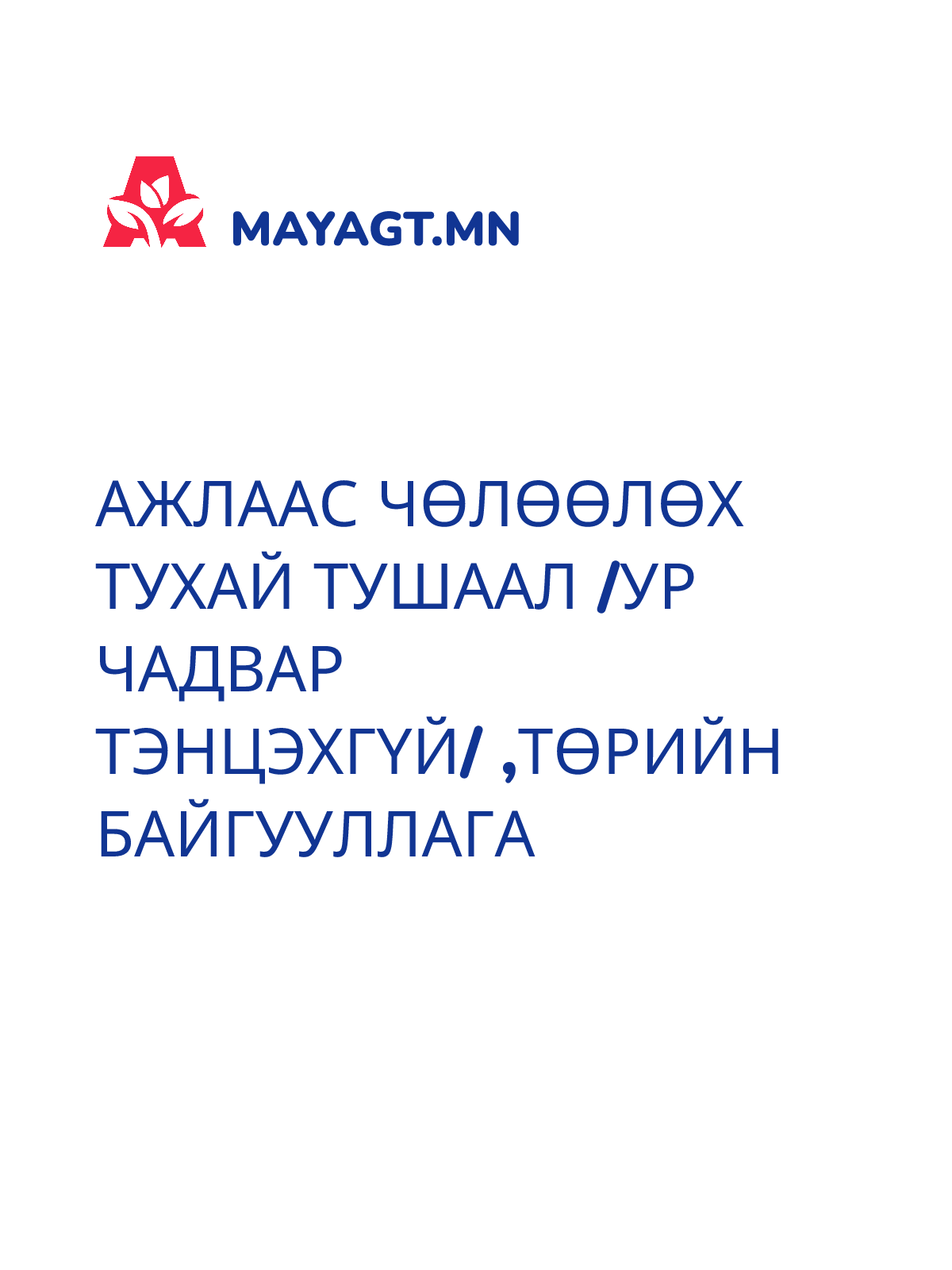 АЖЛААС ЧӨЛӨӨЛӨХ ТУХАЙ ТУШААЛ /Ур чадвар тэнцэхгүй/ ,Төрийн байгууллага