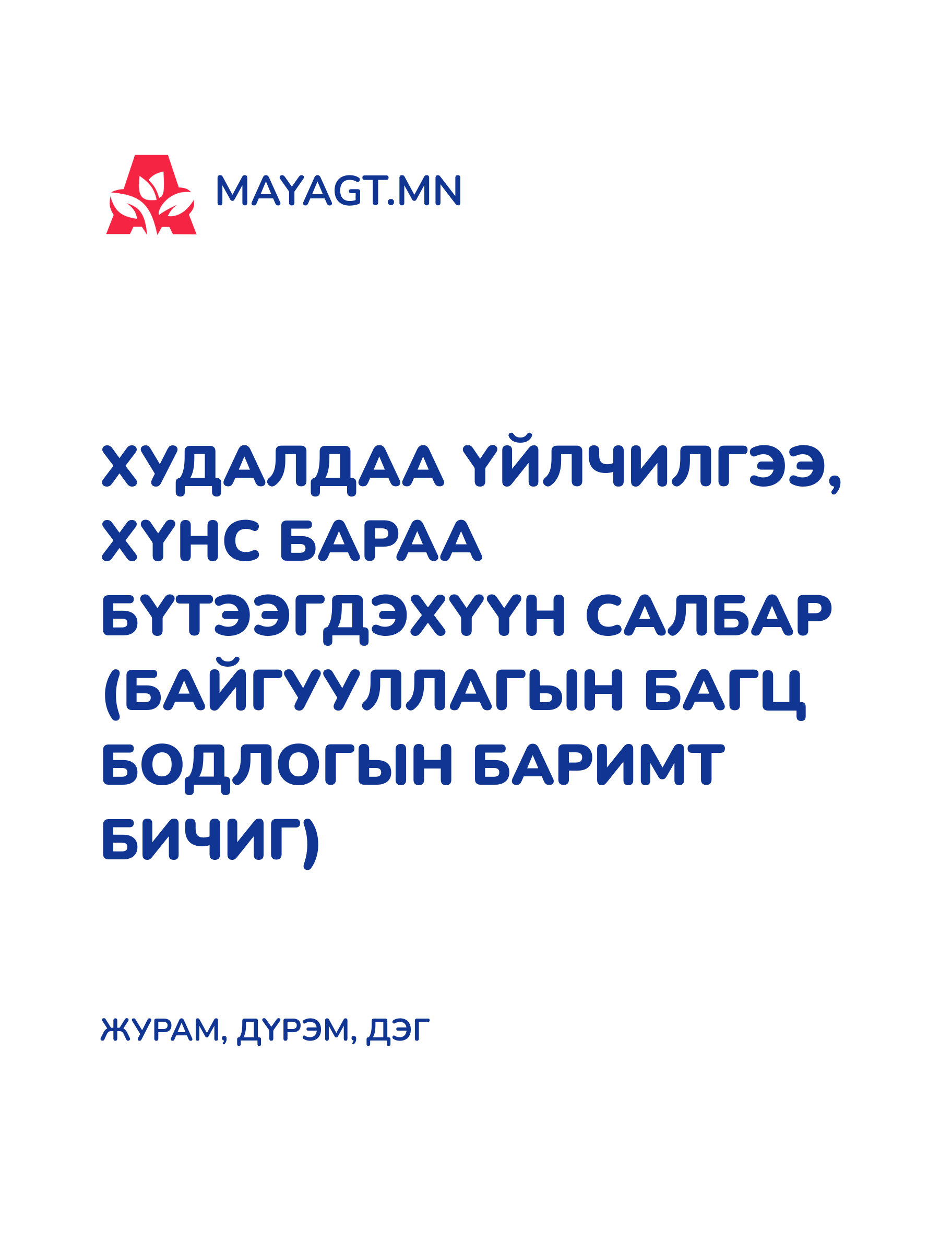 ХУДАЛДАА ҮЙЛЧИЛГЭЭ, ХҮНС БАРАА БҮТЭЭГДЭХҮҮН САЛБАР (БАЙГУУЛЛАГЫН БАГЦ БОДЛОГЫН БАРИМТ БИЧИГ)