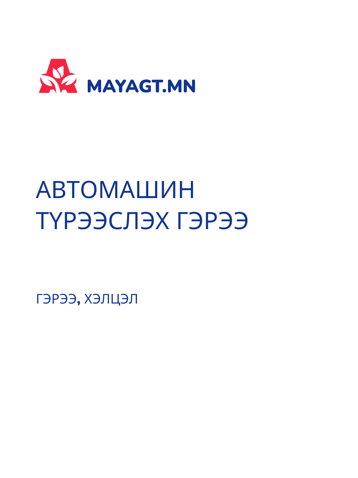 АВТОМАШИН ТҮРЭЭСЛЭХ ГЭРЭЭ