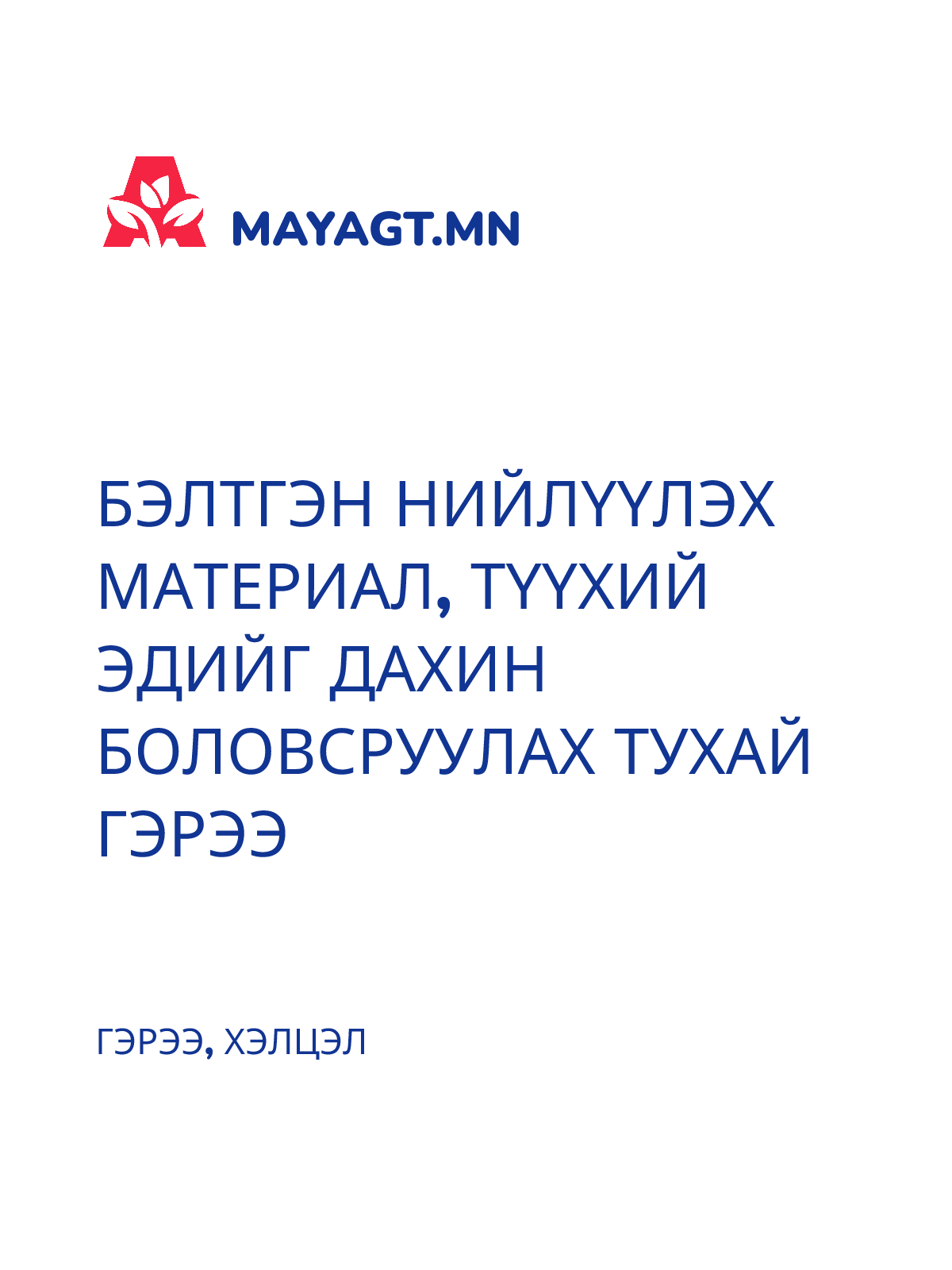 БЭЛТГЭН НИЙЛҮҮЛЭХ МАТЕРИАЛ, ТҮҮХИЙ ЭДИЙГ ДАХИН БОЛОВСРУУЛАХ ТУХАЙ ГЭРЭЭ