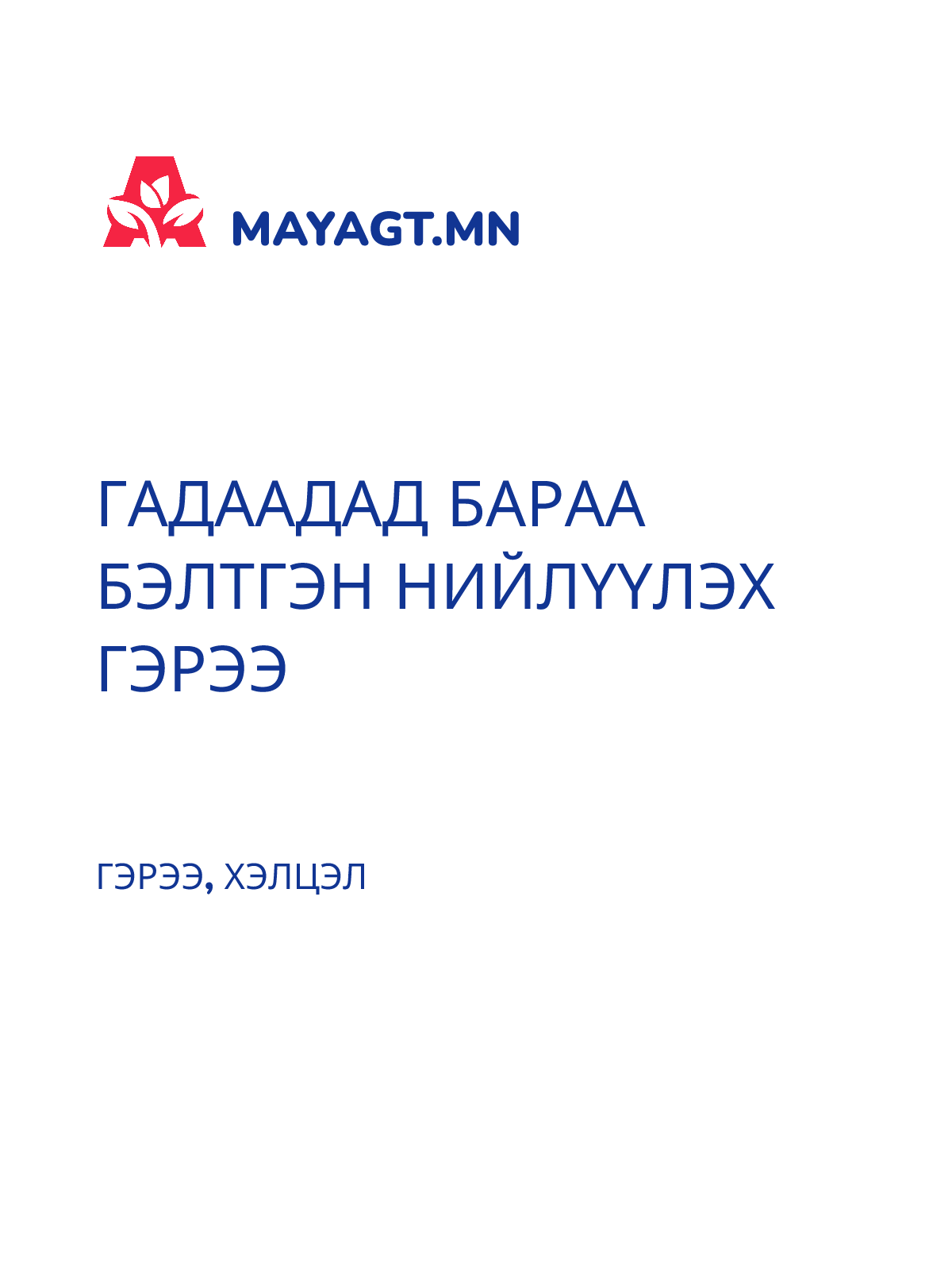 ГАДААДАД БАРАА БЭЛТГЭН НИЙЛҮҮЛЭХ ГЭРЭЭ