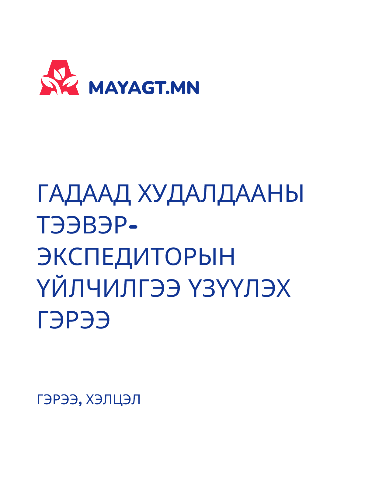 ГАДААД ХУДАЛДААНЫ ТЭЭВЭР-ЭКСПЕДИТОРЫН ҮЙЛЧИЛГЭЭ ҮЗҮҮЛЭХ ГЭРЭЭ