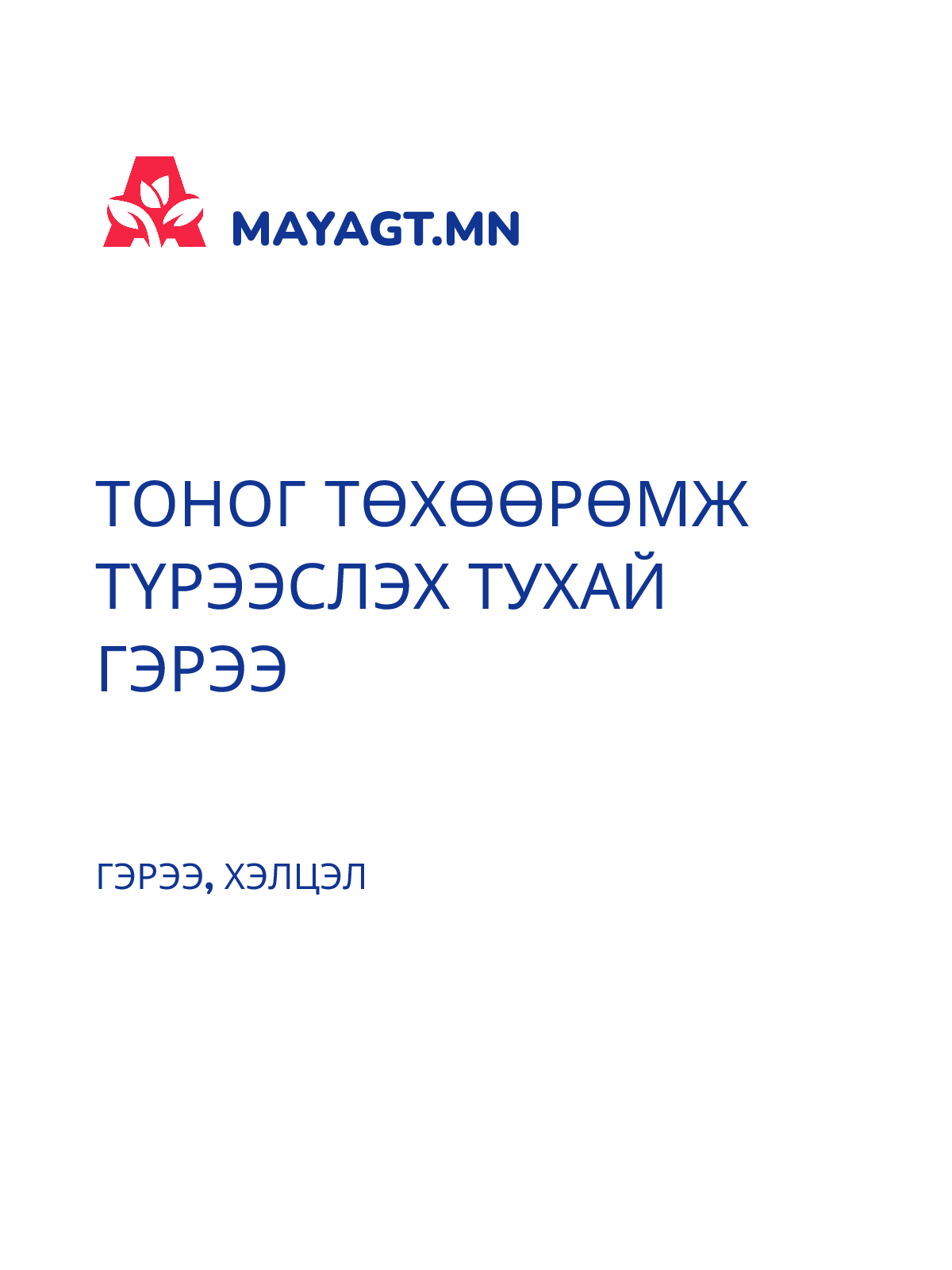 ТОНОГ ТӨХӨӨРӨМЖ ТҮРЭЭСЛЭХ ТУХАЙ ГЭРЭЭ