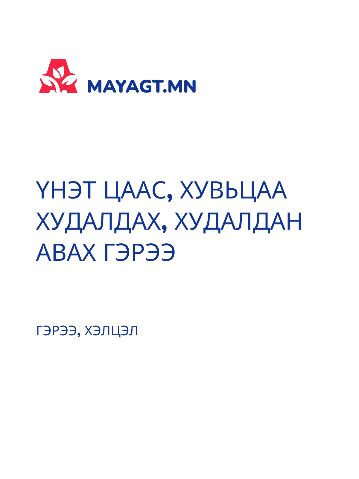 ХУДАЛДАХ, ХУДАЛДАН АВАХ ГЭРЭЭ
