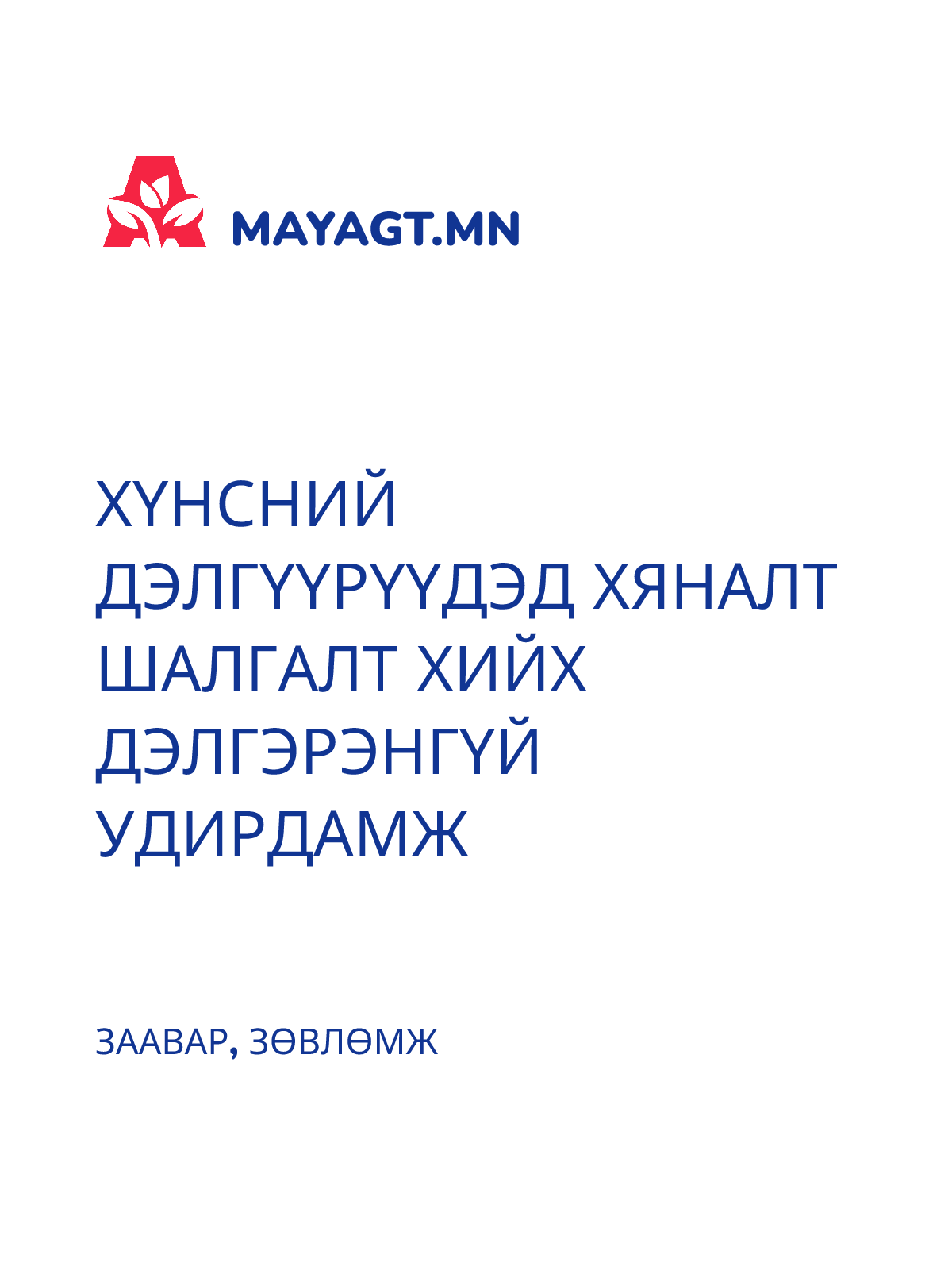 ХҮНСНИЙ ДЭЛГҮҮРҮҮДЭД ХЯНАЛТ ШАЛГАЛТ ХИЙХ ДЭЛГЭРЭНГҮЙ УДИРДАМЖ