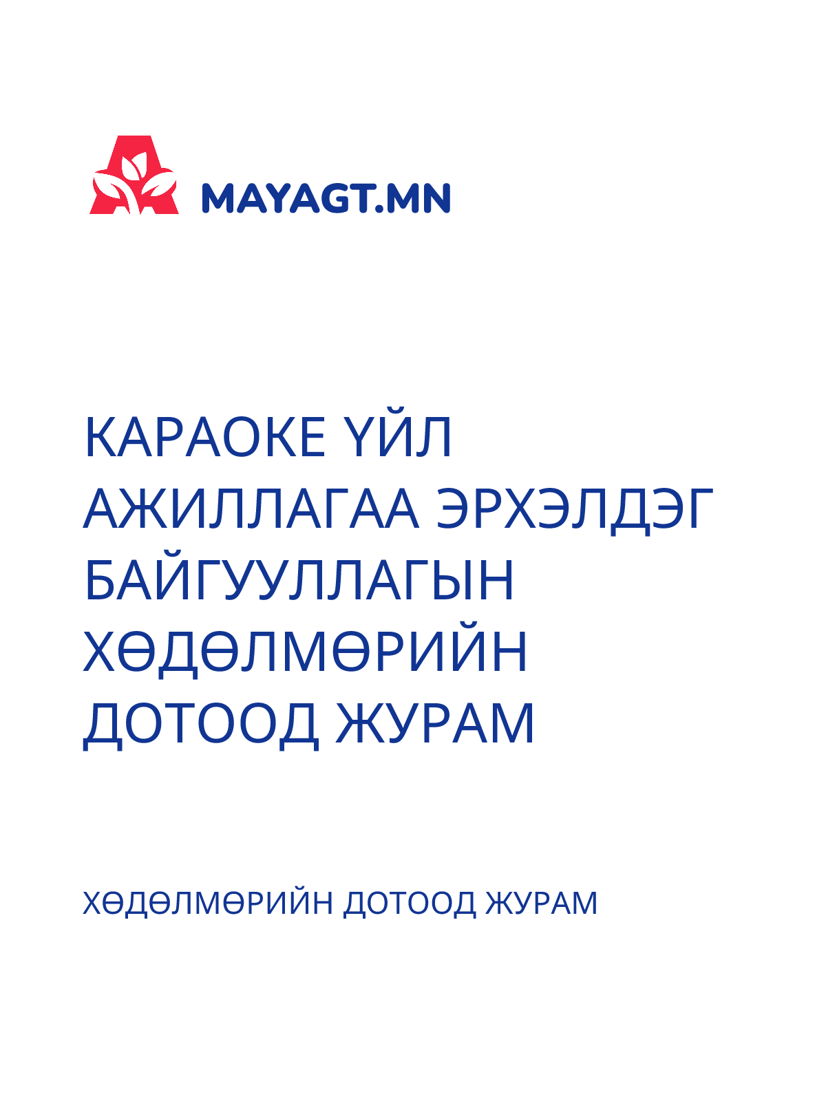 КАРАОКЕ ҮЙЛ АЖИЛЛАГАА ЭРХЭЛДЭГ БАЙГУУЛЛАГЫН ХӨДӨЛМӨРИЙН ДОТООД ЖУРАМ
