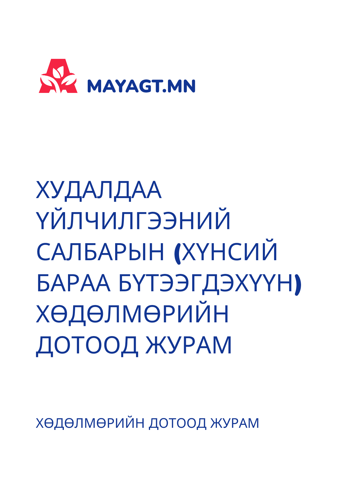 БАРАА АЖИЛ ҮЙЛЧИЛГЭЭ ХУДАЛДАН АВАХ ЖУРАМ