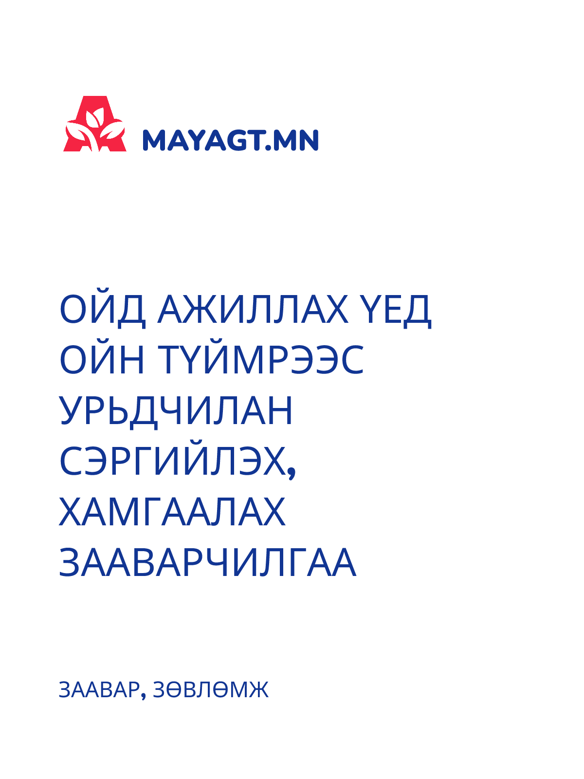 ОЙД АЖИЛЛАХ ҮЕД ОЙН ТҮЙМРЭЭС УРЬДЧИЛАН СЭРГИЙЛЭХ, ХАМГААЛАХ ЗААВАРЧИЛГАА