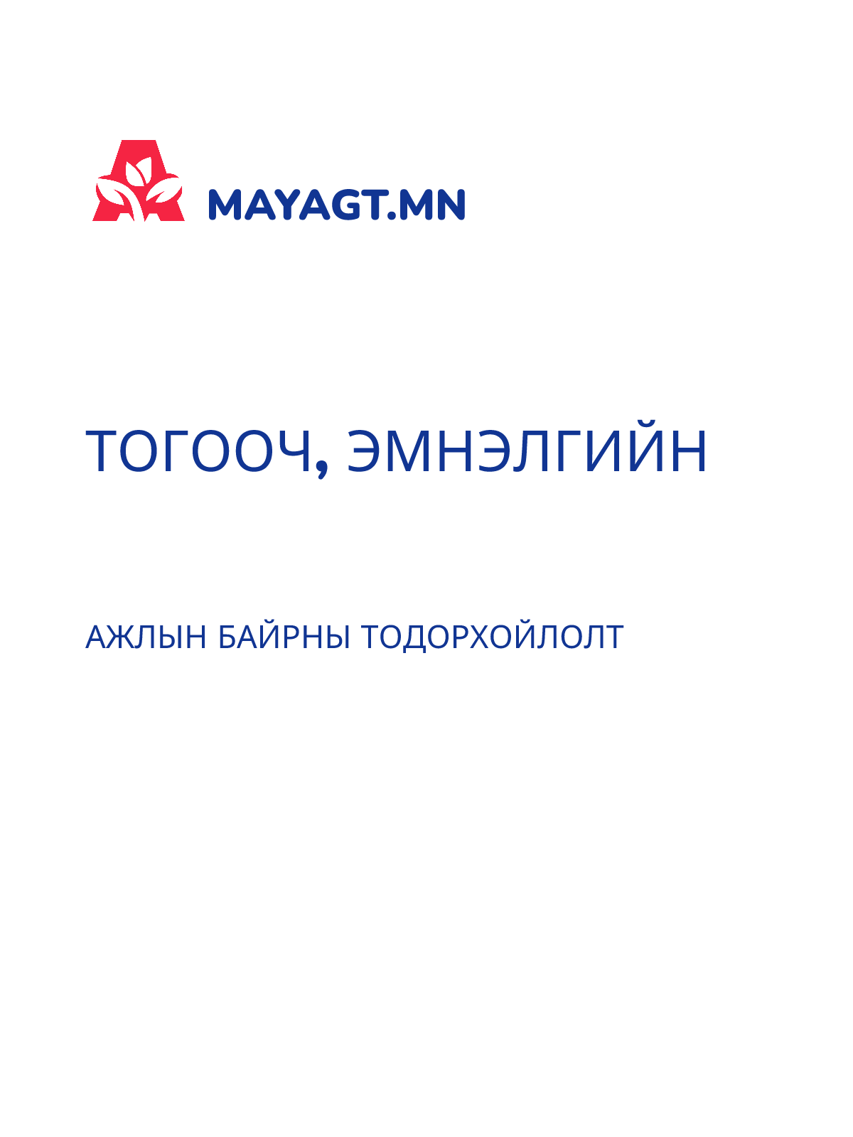 АЖЛЫН БАЙРНЫ ТОДОРХОЙЛОЛТ