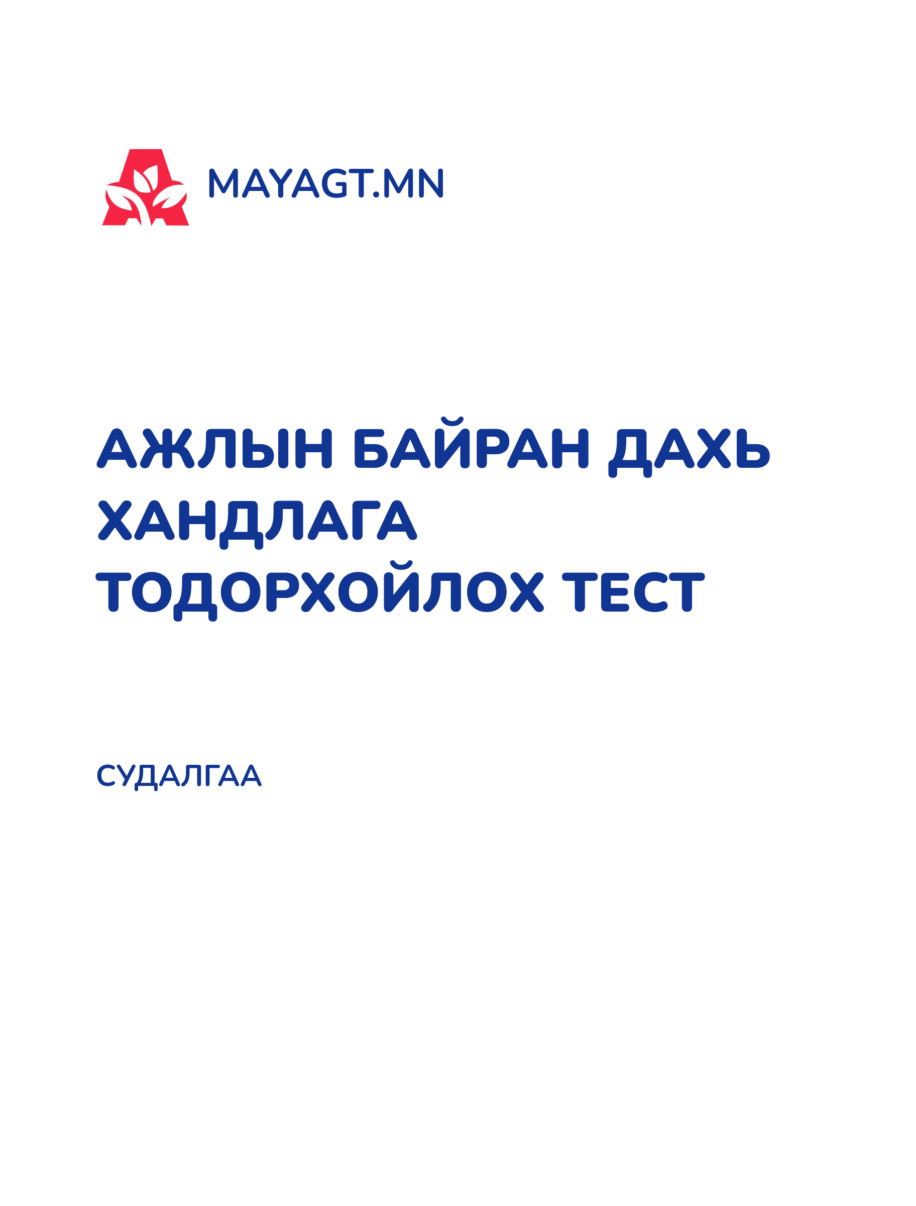 АЖЛЫН БАЙРАН ДАХЬ ХАНДЛАГА ТОДОРХОЙЛОХ ТЕСТ