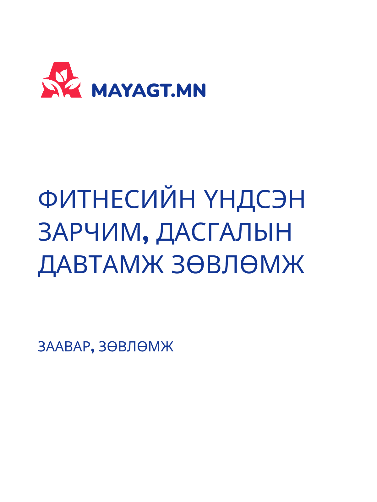ФИТНЕСИЙН ҮНДСЭН ЗАРЧИМ, ДАСГАЛЫН ДАВТАМЖ ЗӨВЛӨМЖ