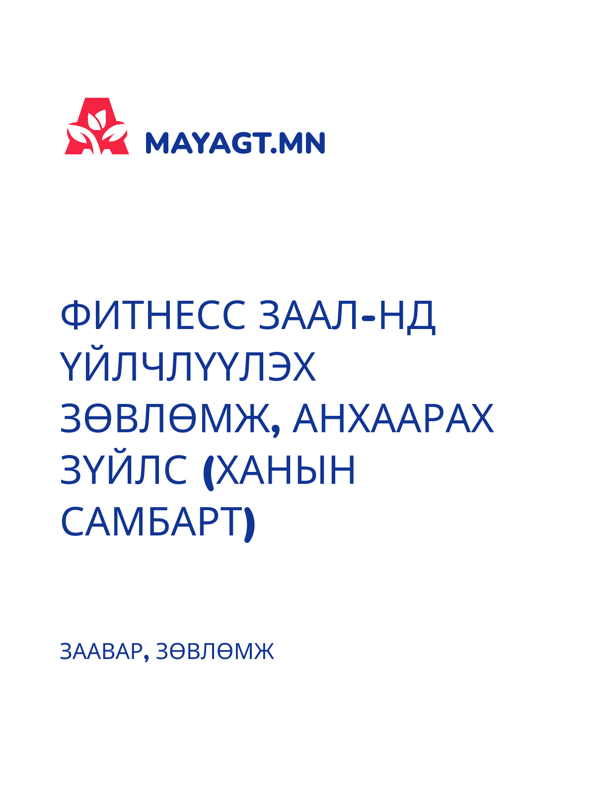 ФИТНЕСС ЗААЛ-НД ҮЙЛЧЛҮҮЛЭХ ЗӨВЛӨМЖ, АНХААРАХ ЗҮЙЛС (ХАНЫН САМБАРТ)