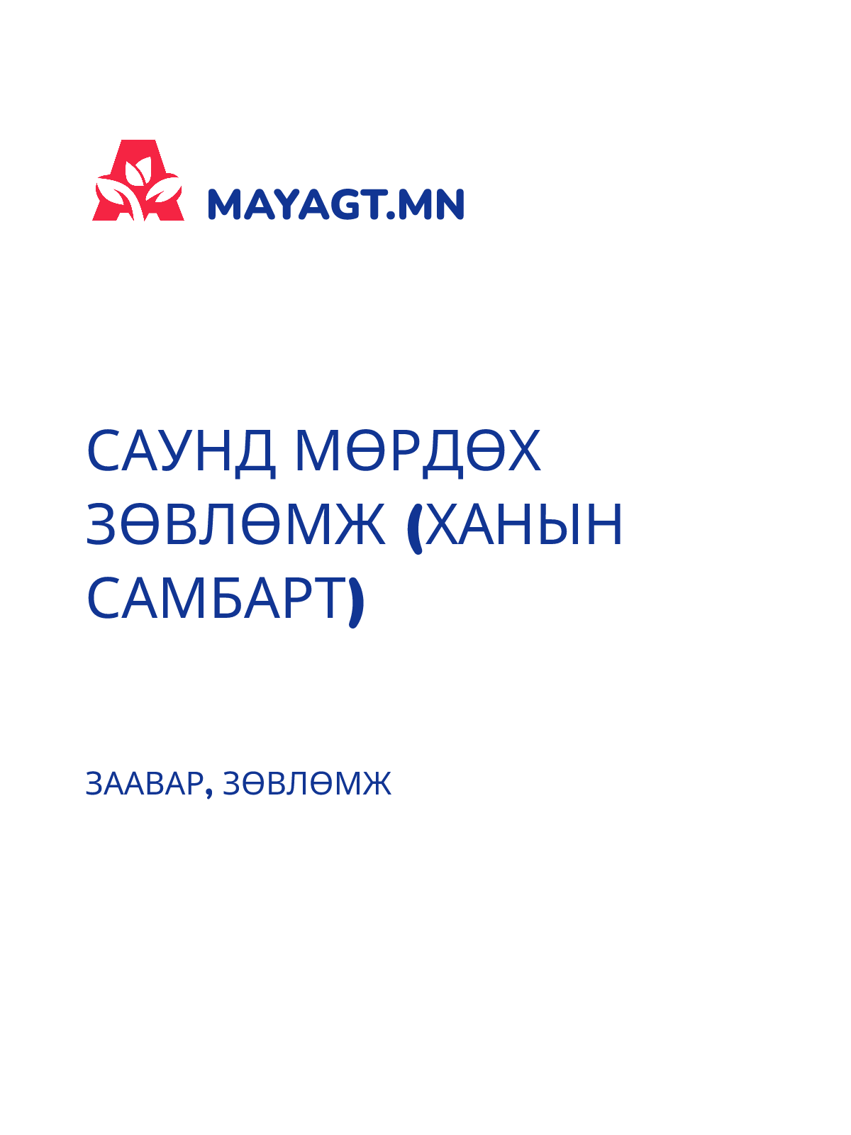 САУНД МӨРДӨХ ЗӨВЛӨМЖ (ХАНЫН САМБАРТ)