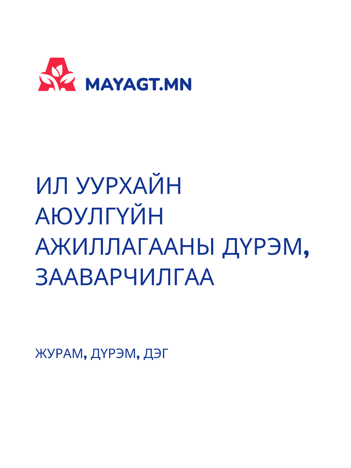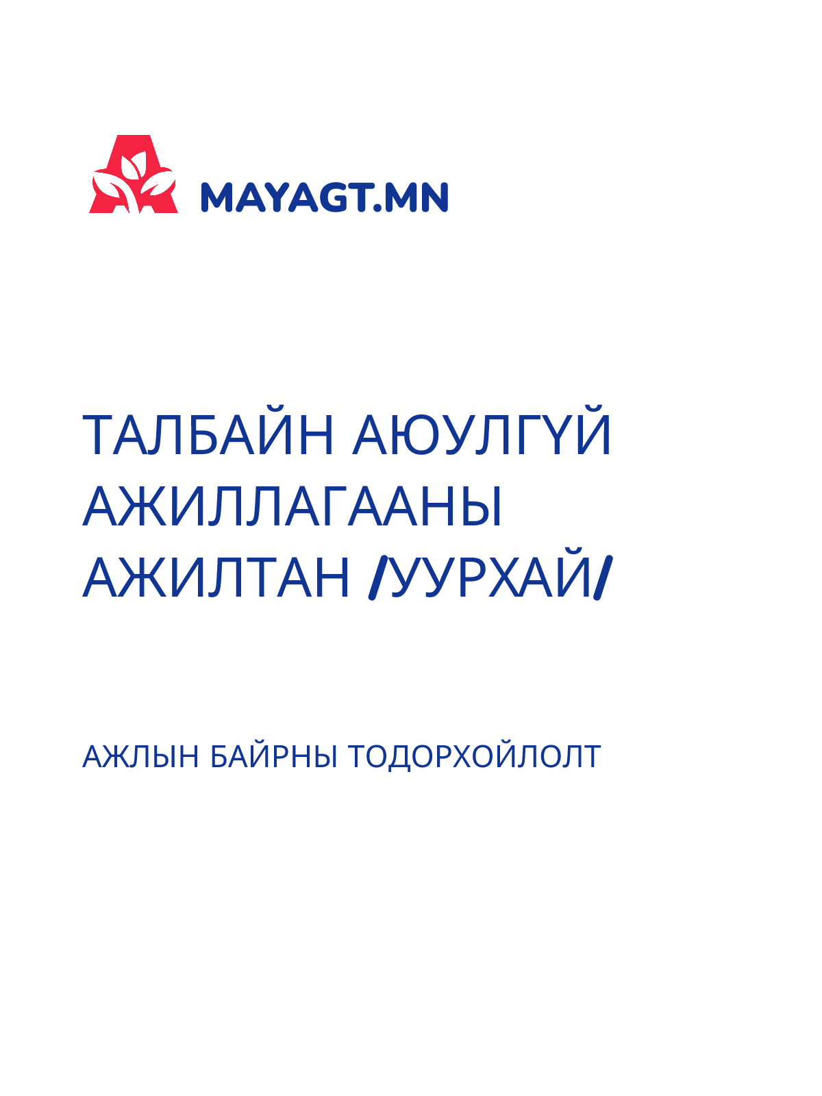 АЮУЛГҮЙ БАЙДЛАА ХАНГАН АЖИЛЛАХ МЭДЭЭЛЛИЙН ХУУДАС