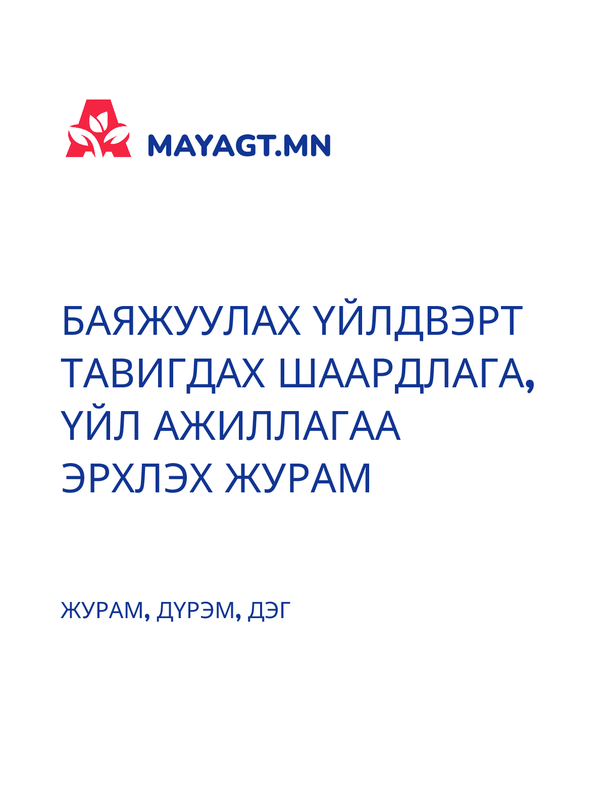 БАРАА АЖИЛ ҮЙЛЧИЛГЭЭ ХУДАЛДАН АВАХ ЖУРАМ