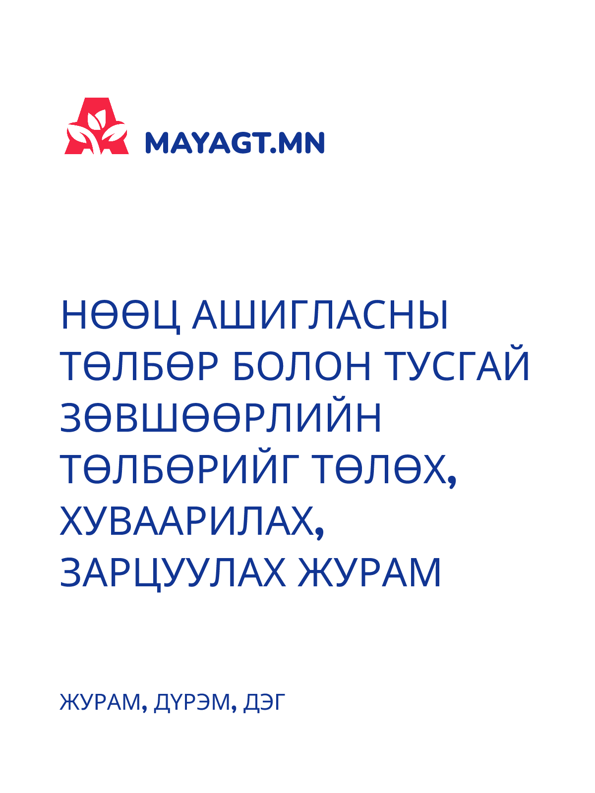 АЖИЛД ОРОХ ӨРГӨДЛИЙН МАЯГТ