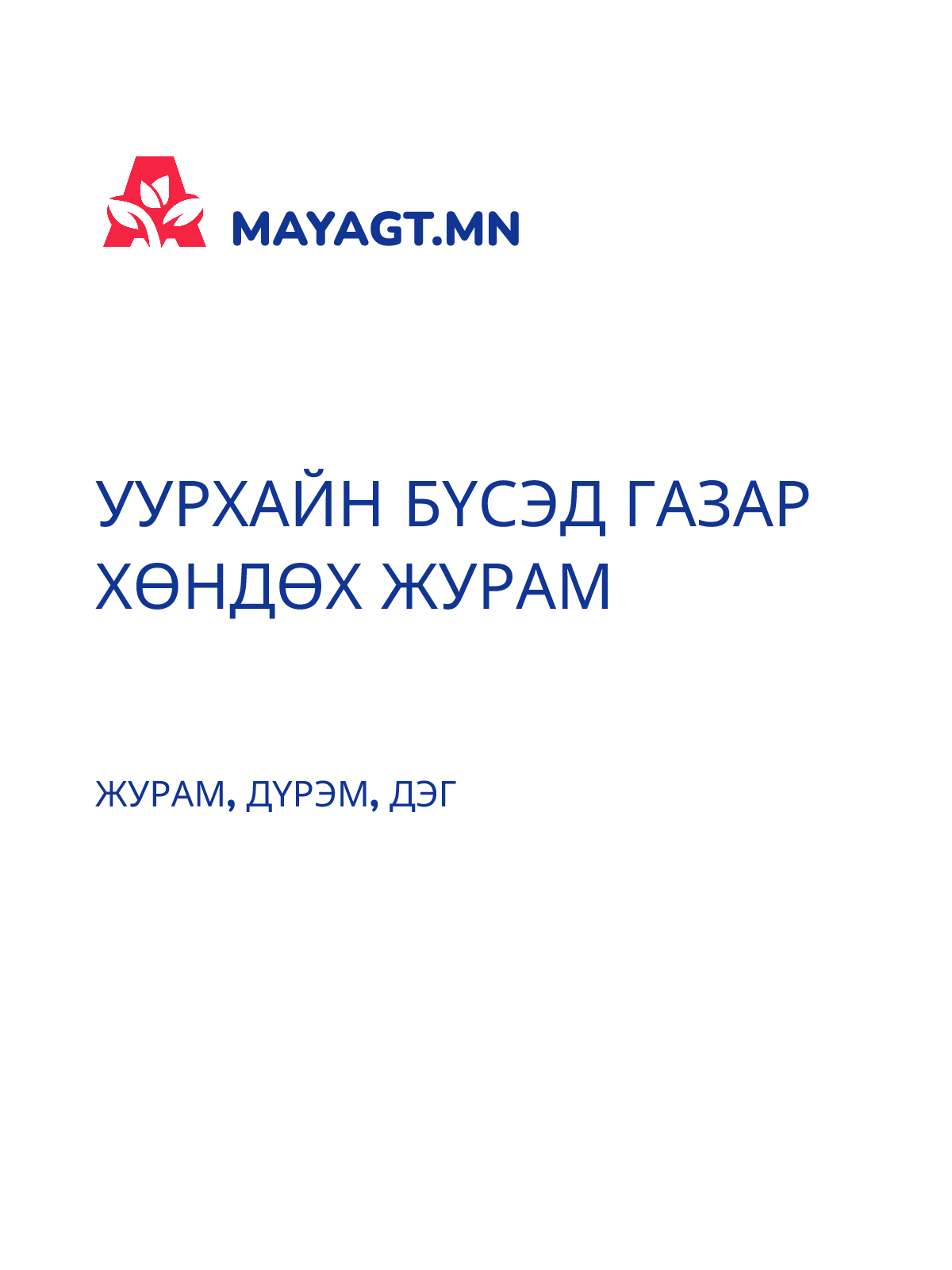 ГАЗРЫН ТОС, УЛАМЖЛАЛТ БУС ГАЗРЫН ТОСНЫ ЭРЭЛ, ХАЙГУУЛ, АШИГЛАЛТЫН ТАЛБАЙГ БУЦААН ӨГӨХ, ХҮЛЭЭН АВАХ ЖУРАМ