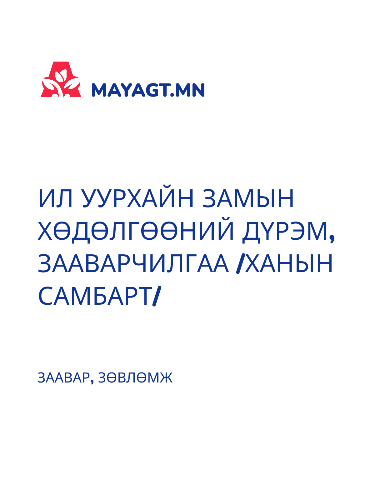 ЗААВАР, ЗӨВЛӨМЖ