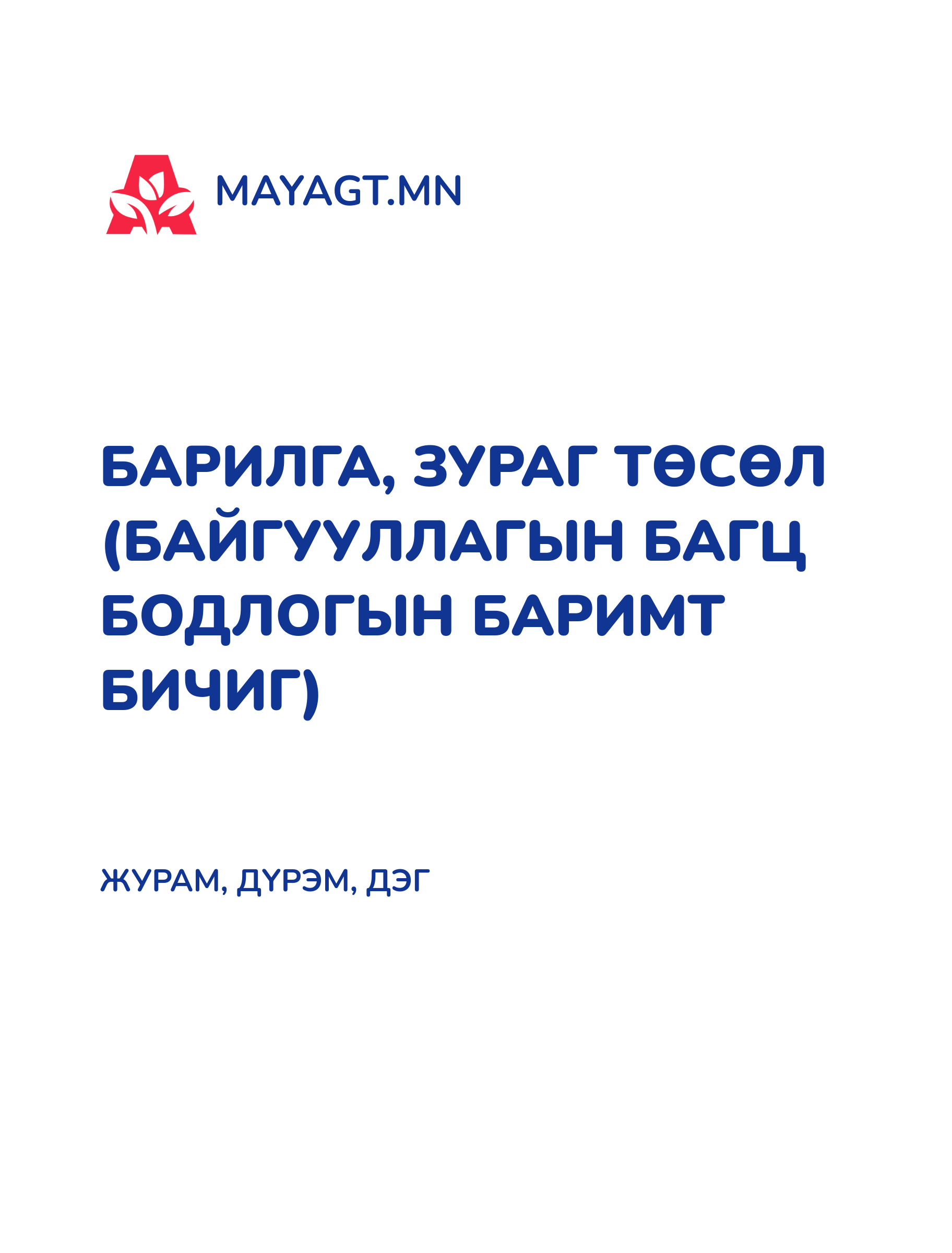 БАРИЛГА, ЗУРАГ ТӨСӨЛ (БАЙГУУЛЛАГЫН БАГЦ БОДЛОГЫН БАРИМТ БИЧИГ)
