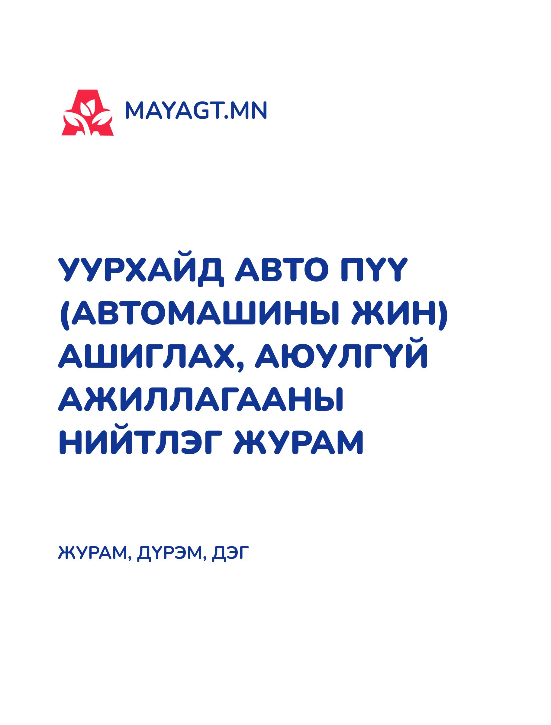 УУРХАЙД АВТО ПҮҮ (АВТОМАШИНЫ ЖИН) АШИГЛАХ, АЮУЛГҮЙ АЖИЛЛАГААНЫ НИЙТЛЭГ ЖУРАМ