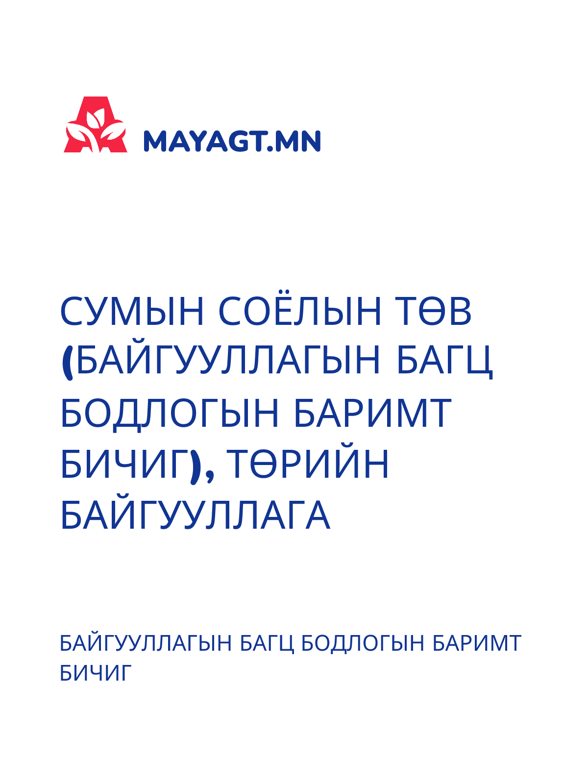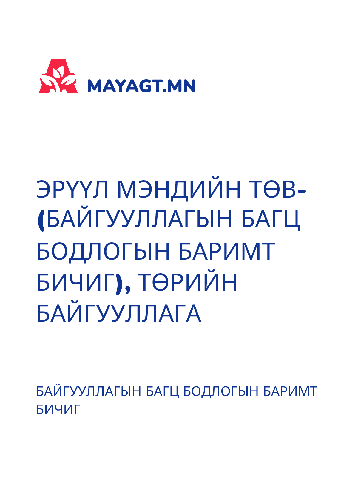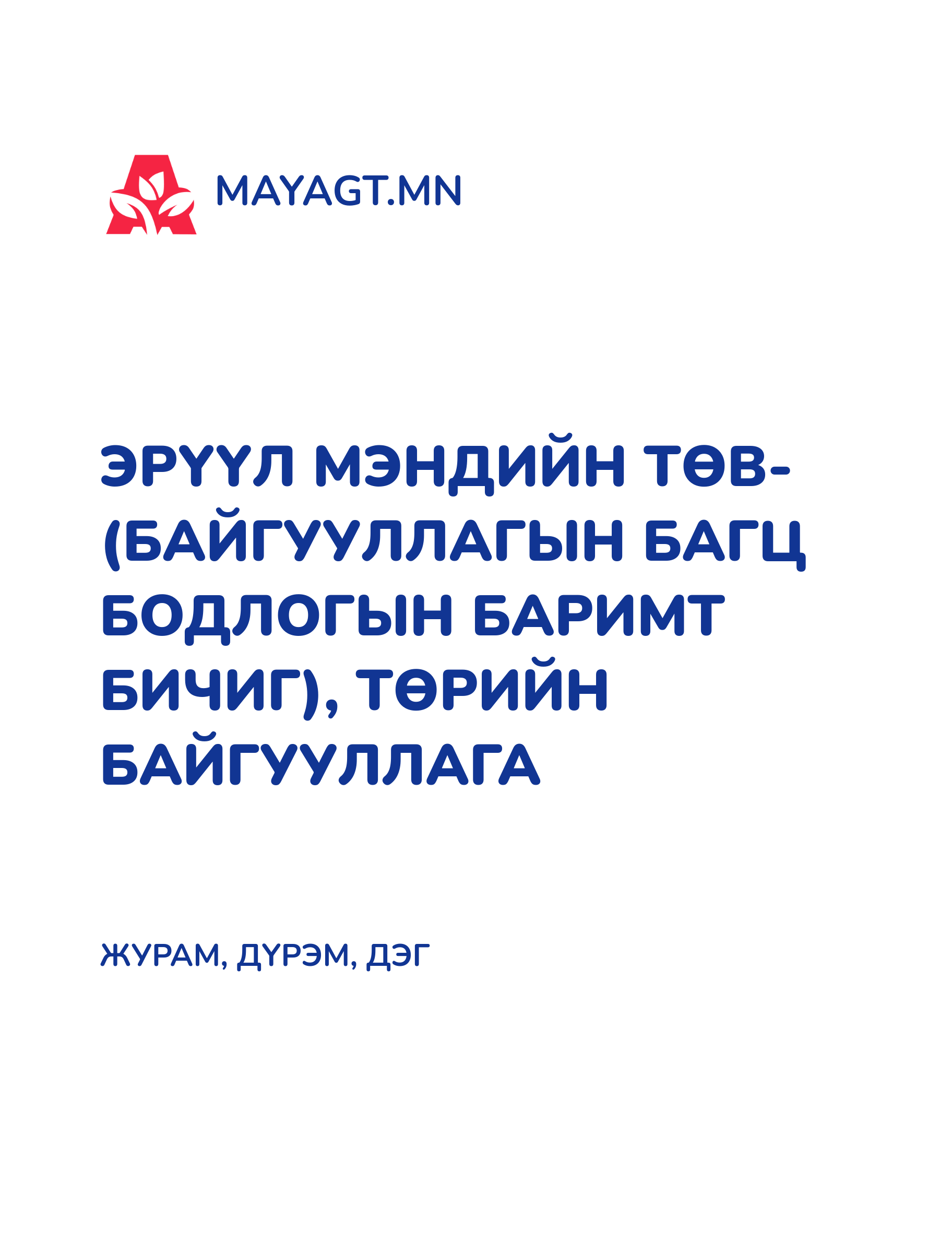 ЕРӨНХИЙ БОЛОВСРОЛЫН СУРГУУЛЬ, ТӨРИЙН (БАЙГУУЛЛАГЫН БАГЦ БОДЛОГЫН БАРИМТ БИЧИГ)