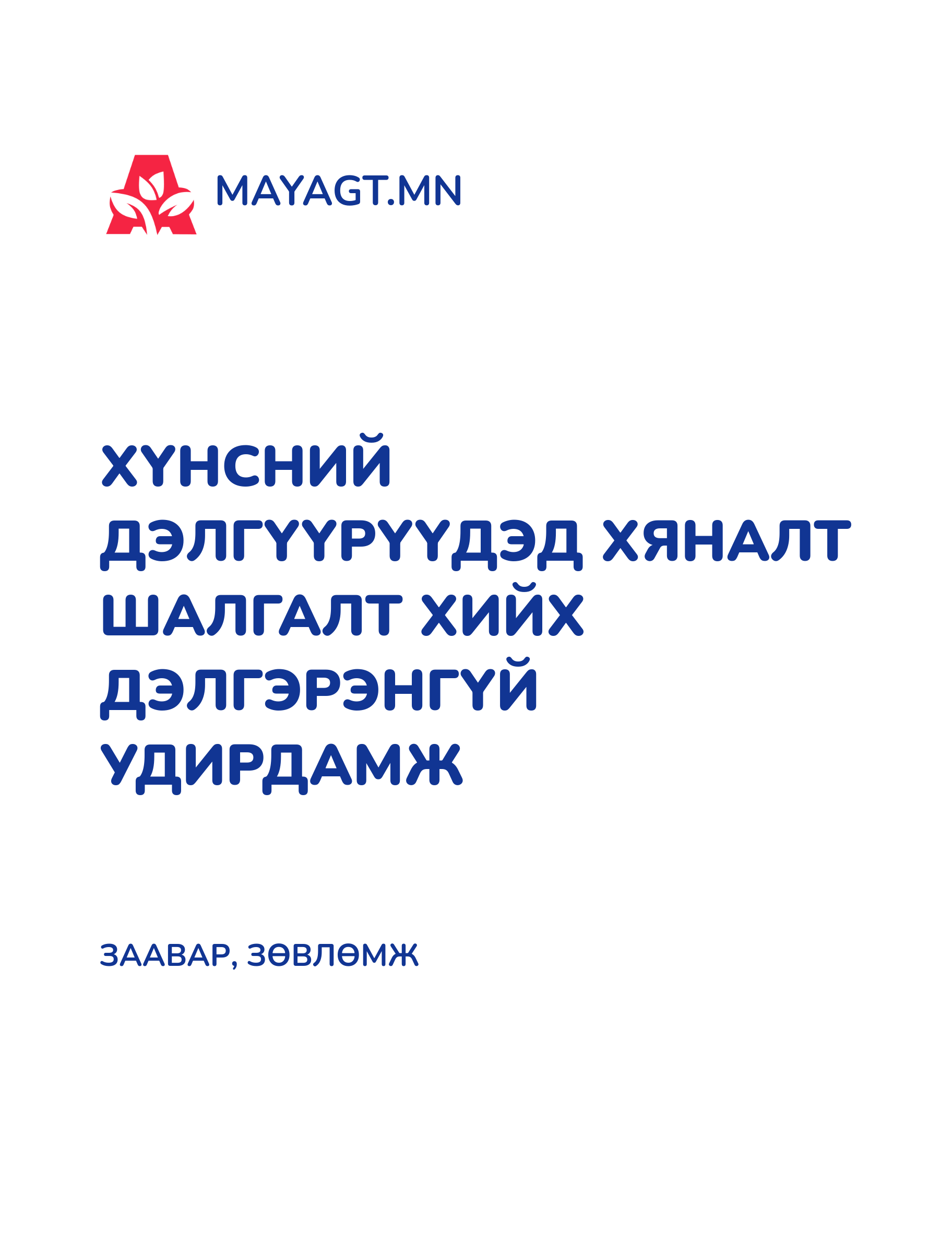 ХҮНСНИЙ ДЭЛГҮҮРҮҮДЭД ХЯНАЛТ ШАЛГАЛТ ХИЙХ ДЭЛГЭРЭНГҮЙ УДИРДАМЖ