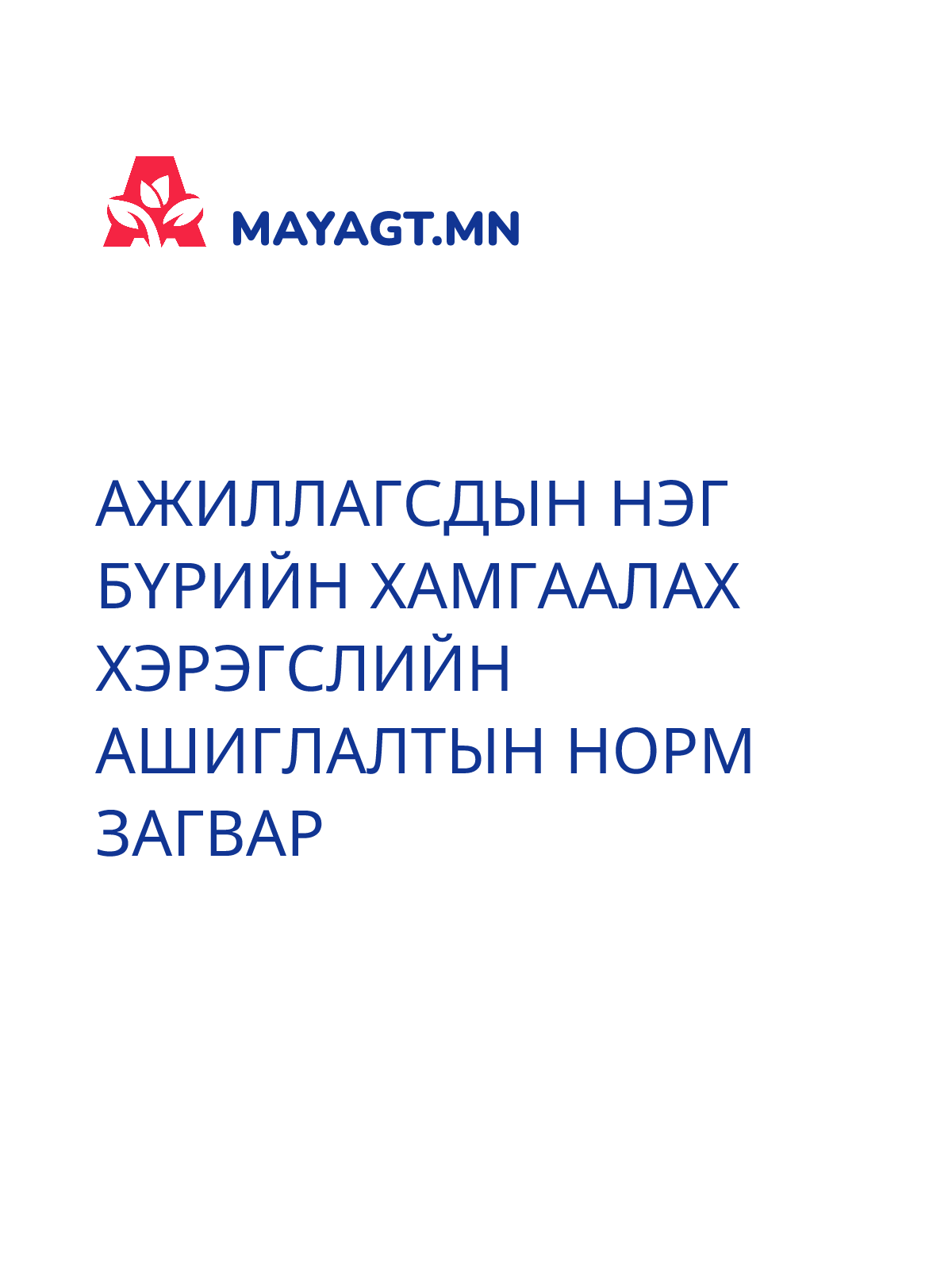 АЖИЛЛАГСДЫН НЭГ БҮРИЙН ХАМГААЛАХ ХЭРЭГСЛИЙН АШИГЛАЛТЫН НОРМ ЗАГВАР